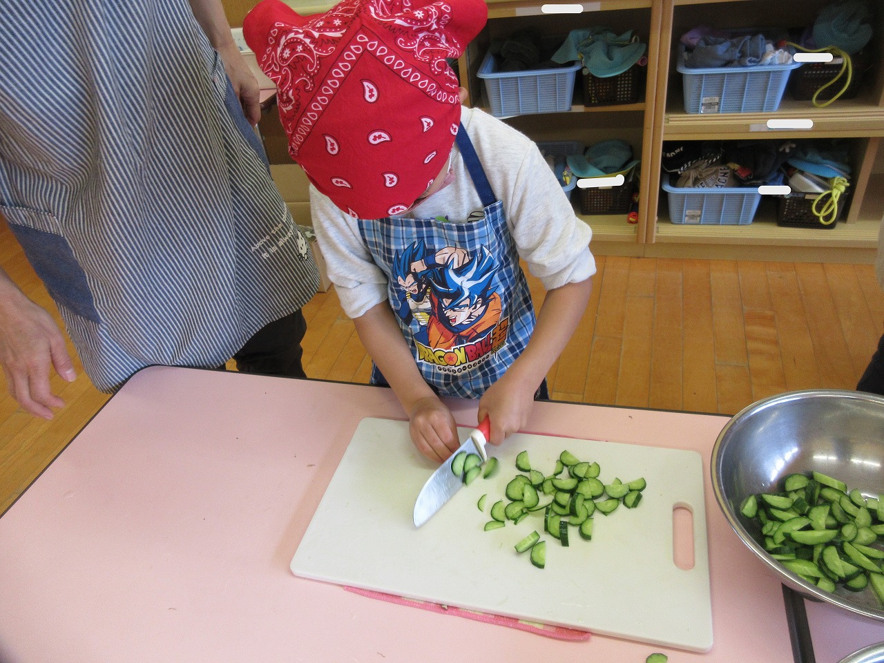 きゅうりは慣れた手つきで「トントントン!」上手です!!