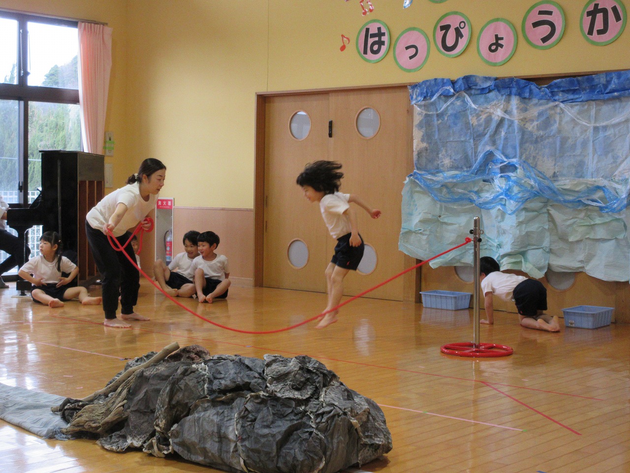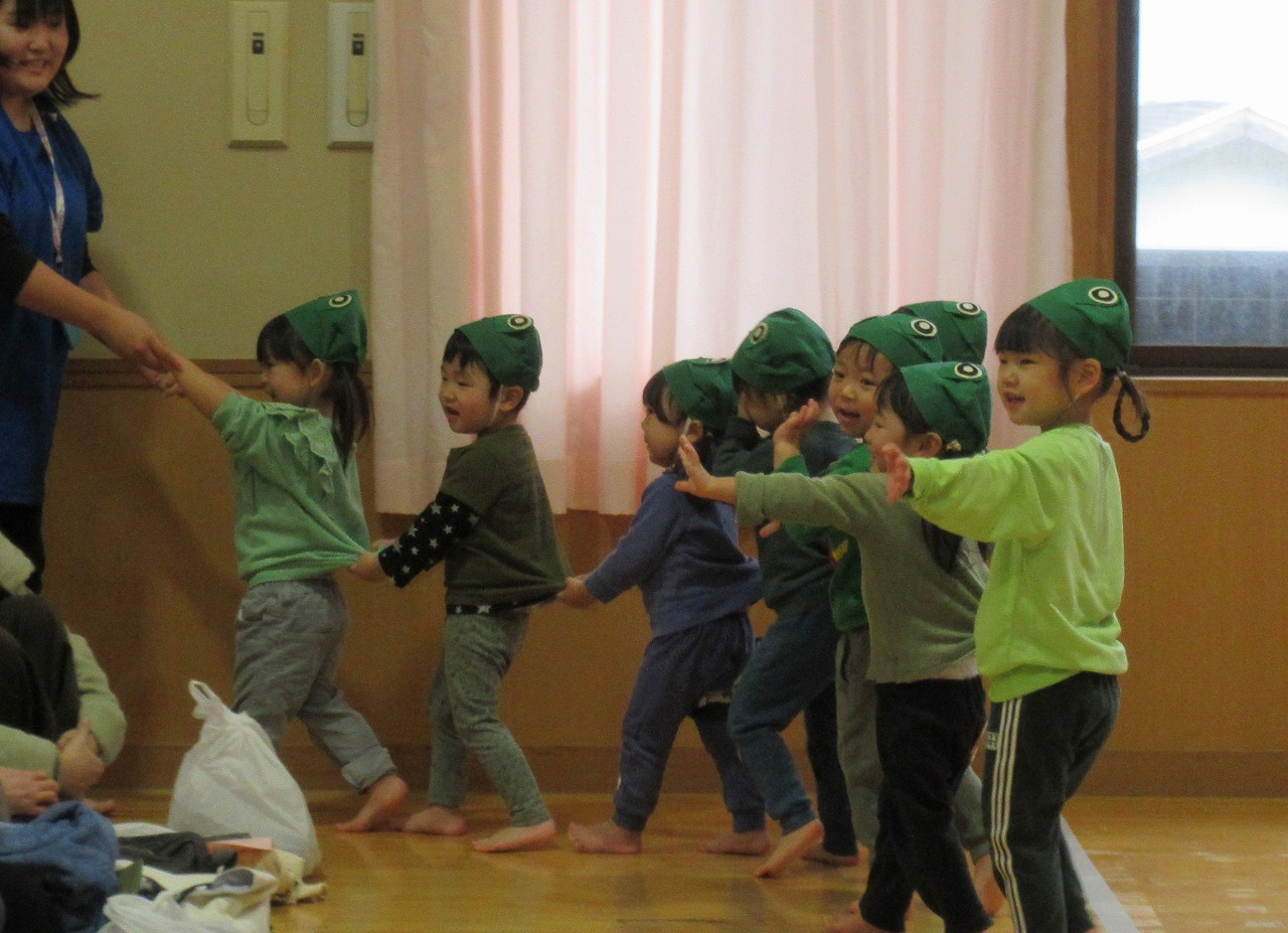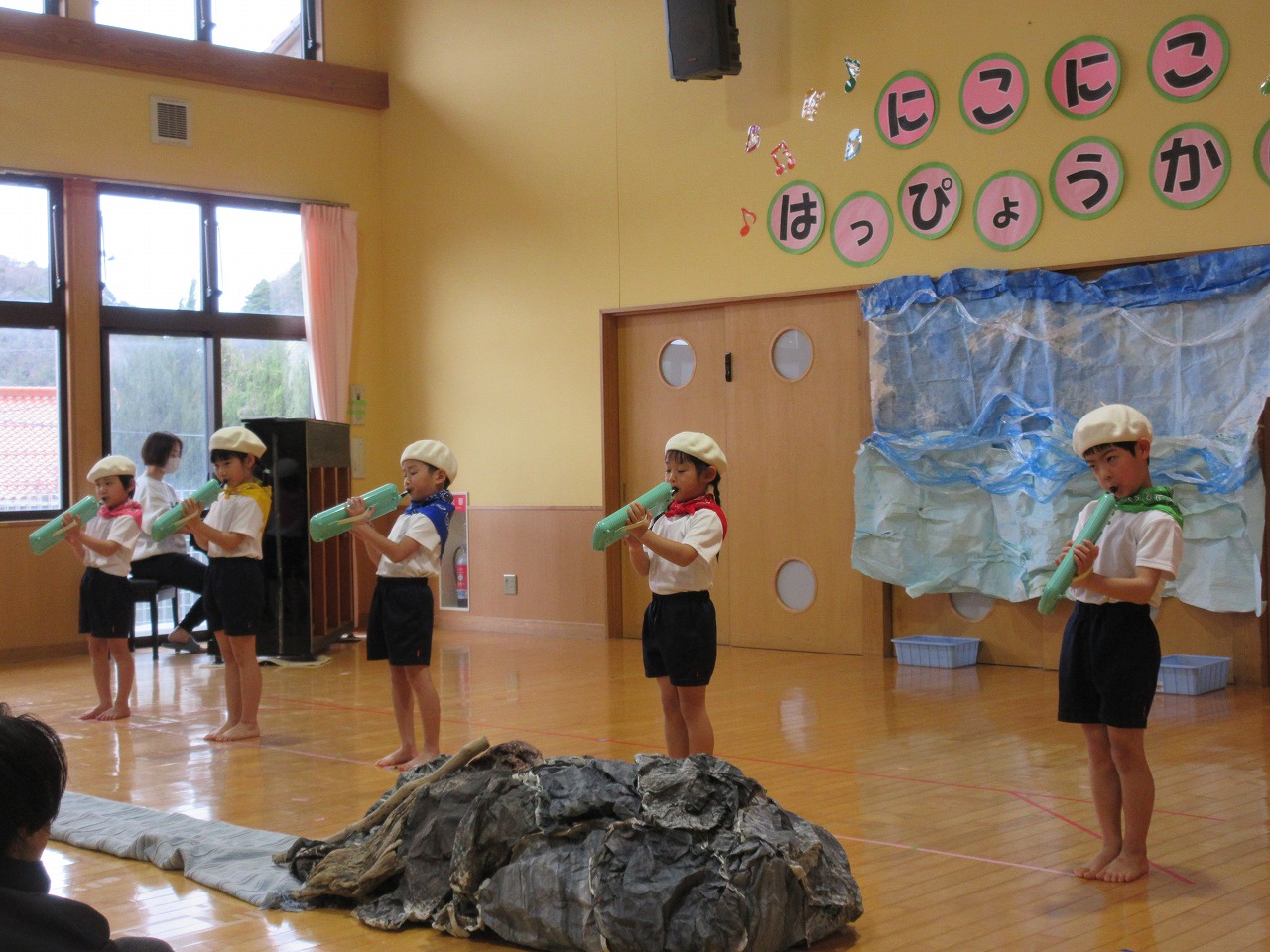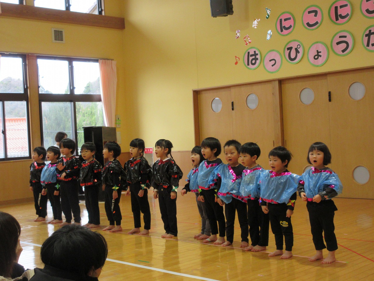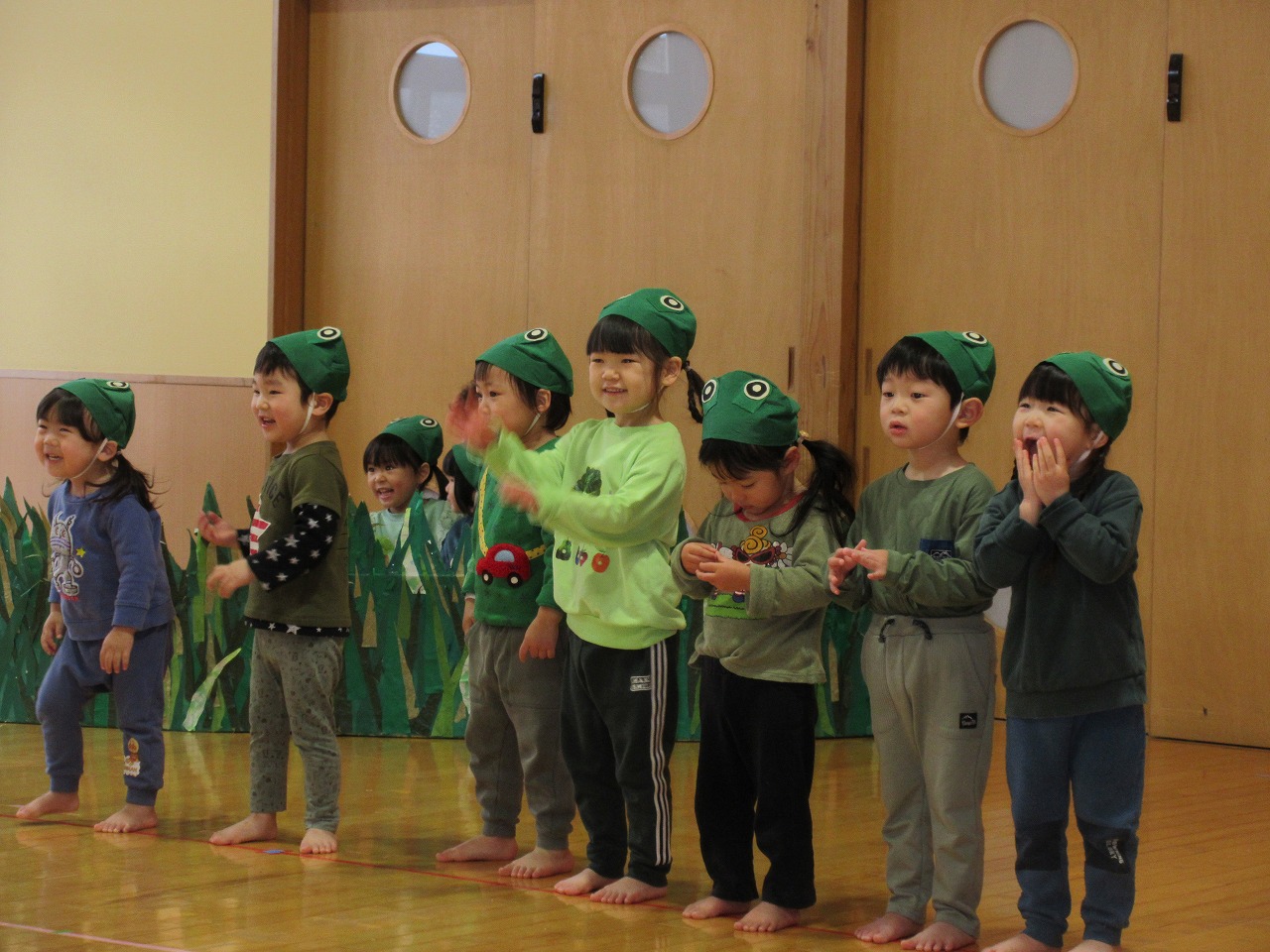 お家の方々の温かい見守りの中、子ども達は見られる事が嬉しくてにこにこ、生き生きと表現していました。子ども達一人一人の成長を感じる発表になったと思います。お家の方々の拍手や笑い声がとても温かく、和やかな雰囲気の中で発表ができました。たくさんの方に見て頂き、ありがとうございました。