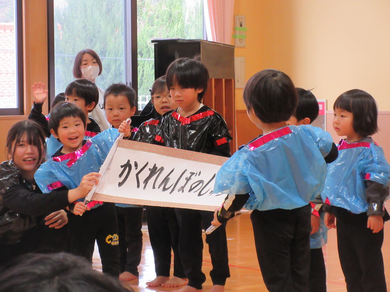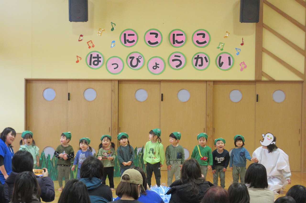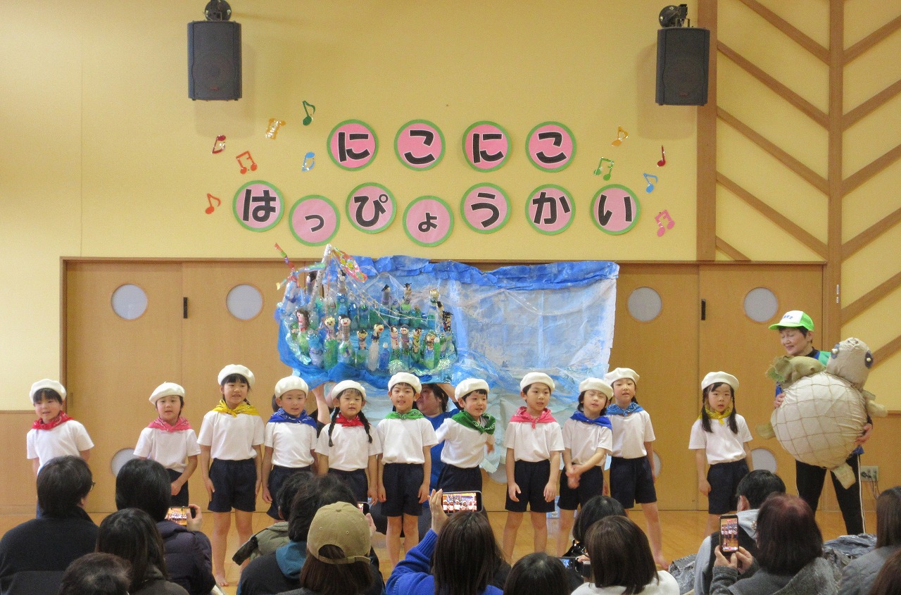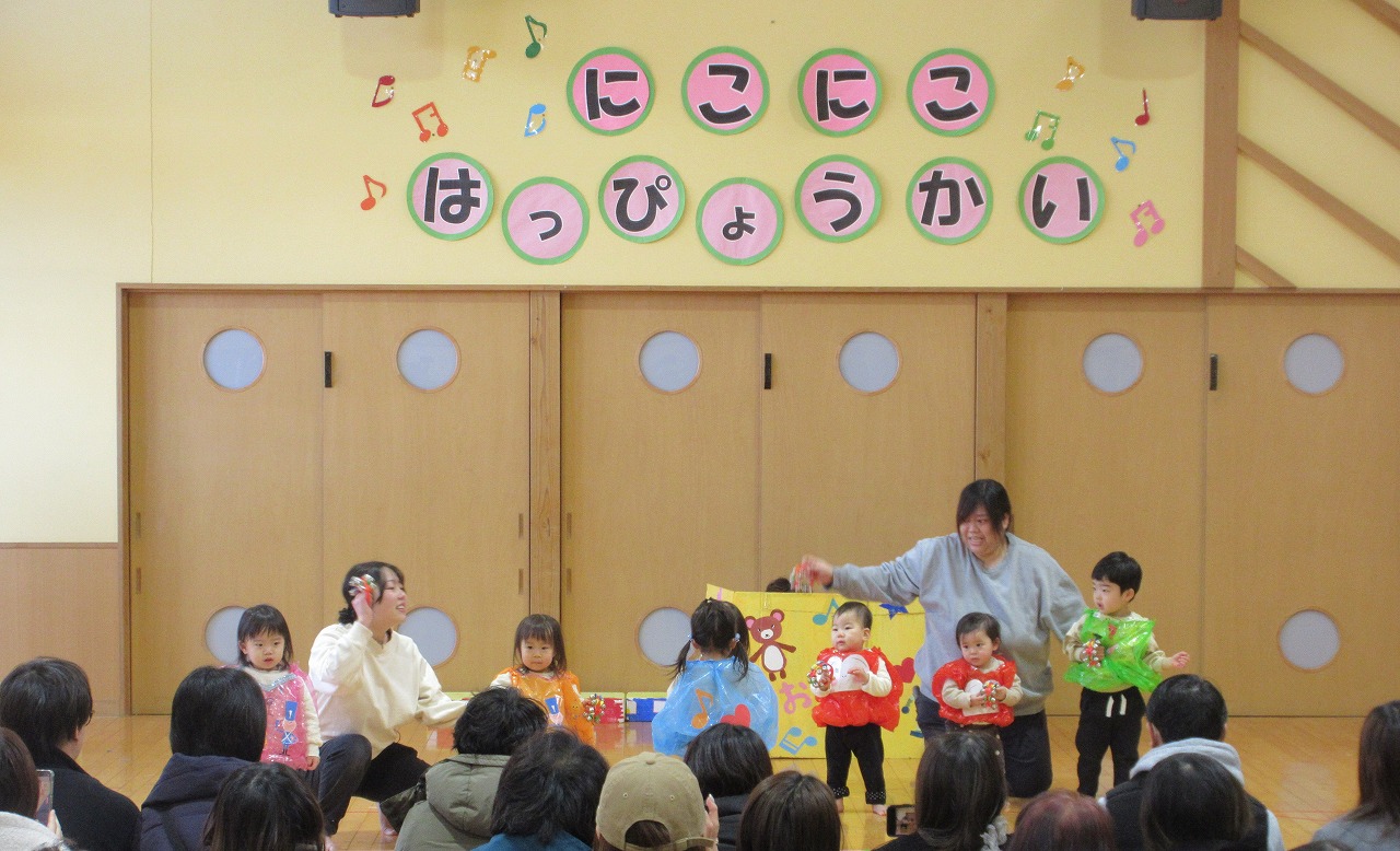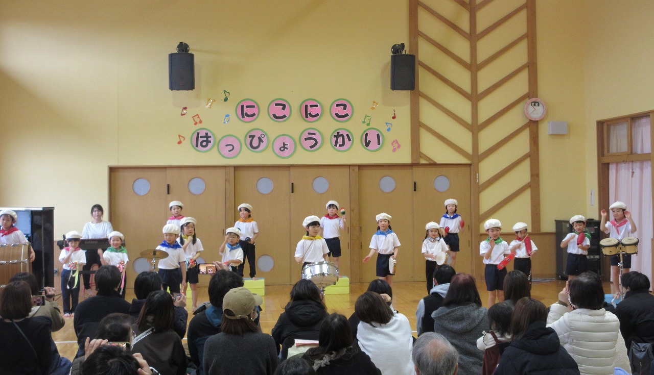今日はにこにこ発表会でした。今年度クラスで楽しく遊んだこと、取り組んできたこと、大切にしてきたことなどを内容に盛り込み、キラキラ輝く子ども達の姿を発表しました。