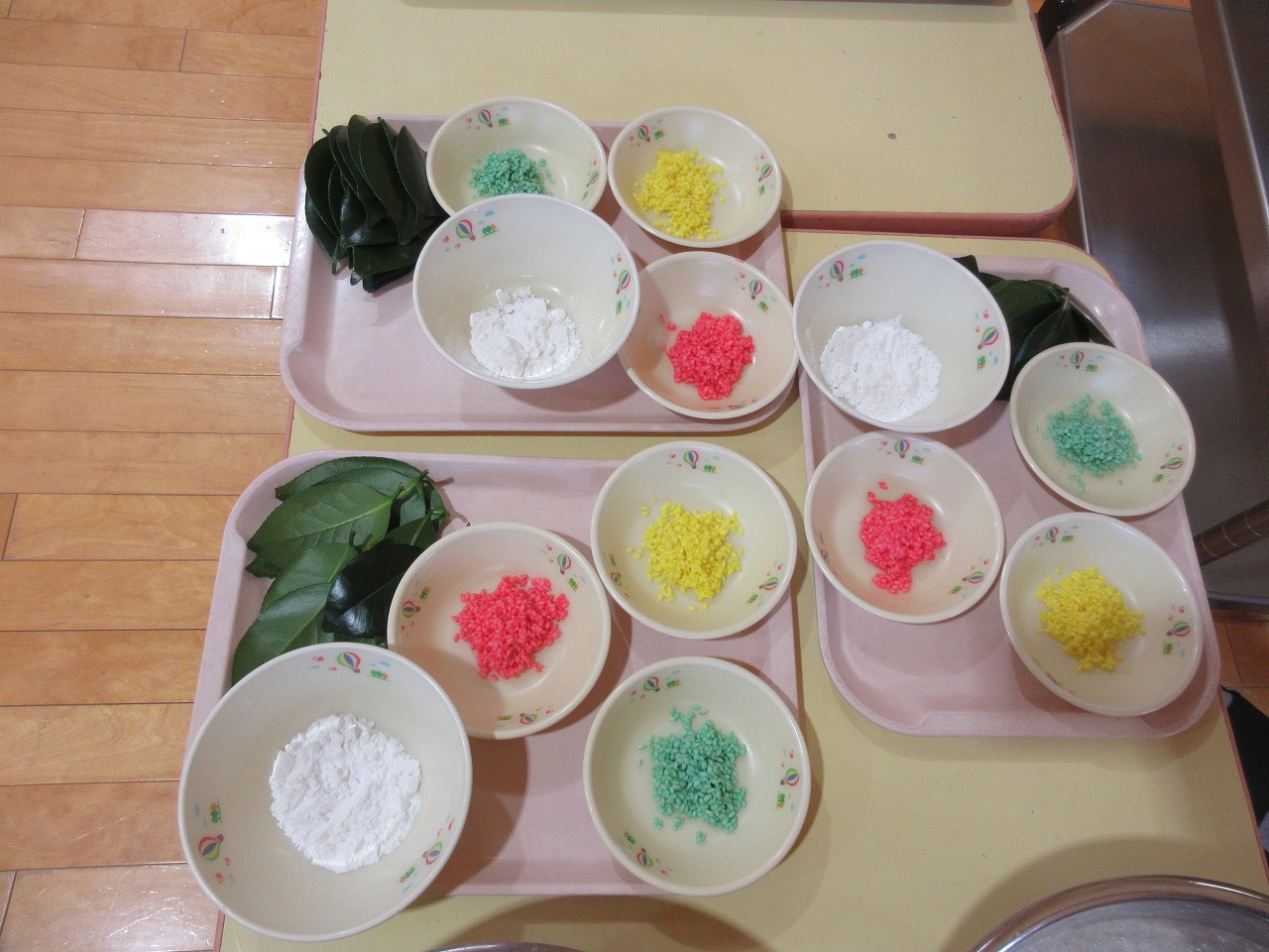 蒸したての花もちを見て「わ~!!きれい!」と色鮮やかな花もちに大歓声!見て楽しい、食べておいしい!最高の時間になりました。