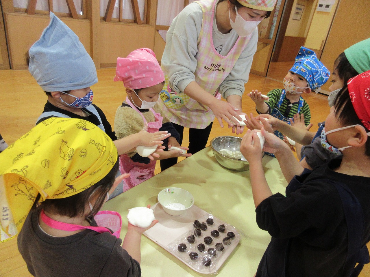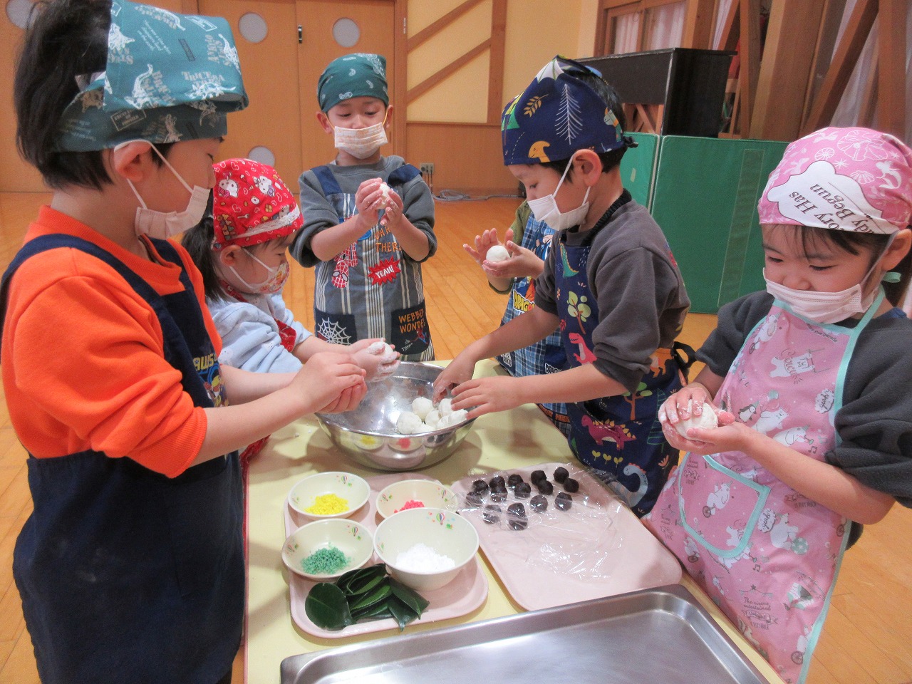 花もち作りを行いました🌸(ぺんぎん・いるか・くじら)
