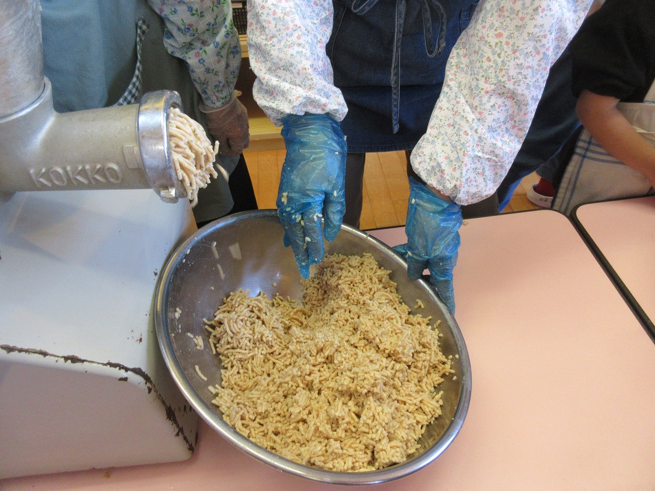 近くで見せてもらうとより強く香りを感じ、ミンサーから出てくる様子に興味津々です!!