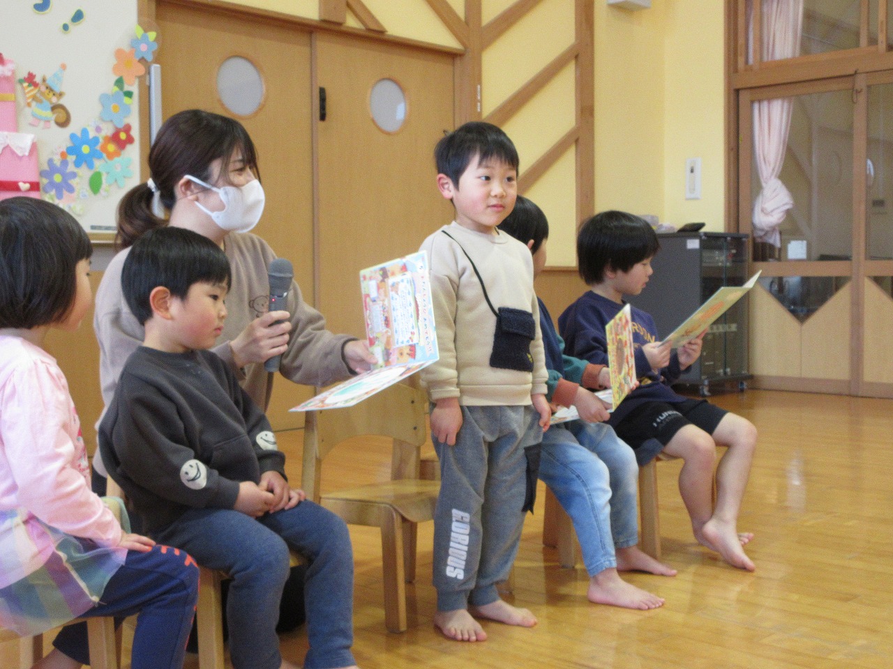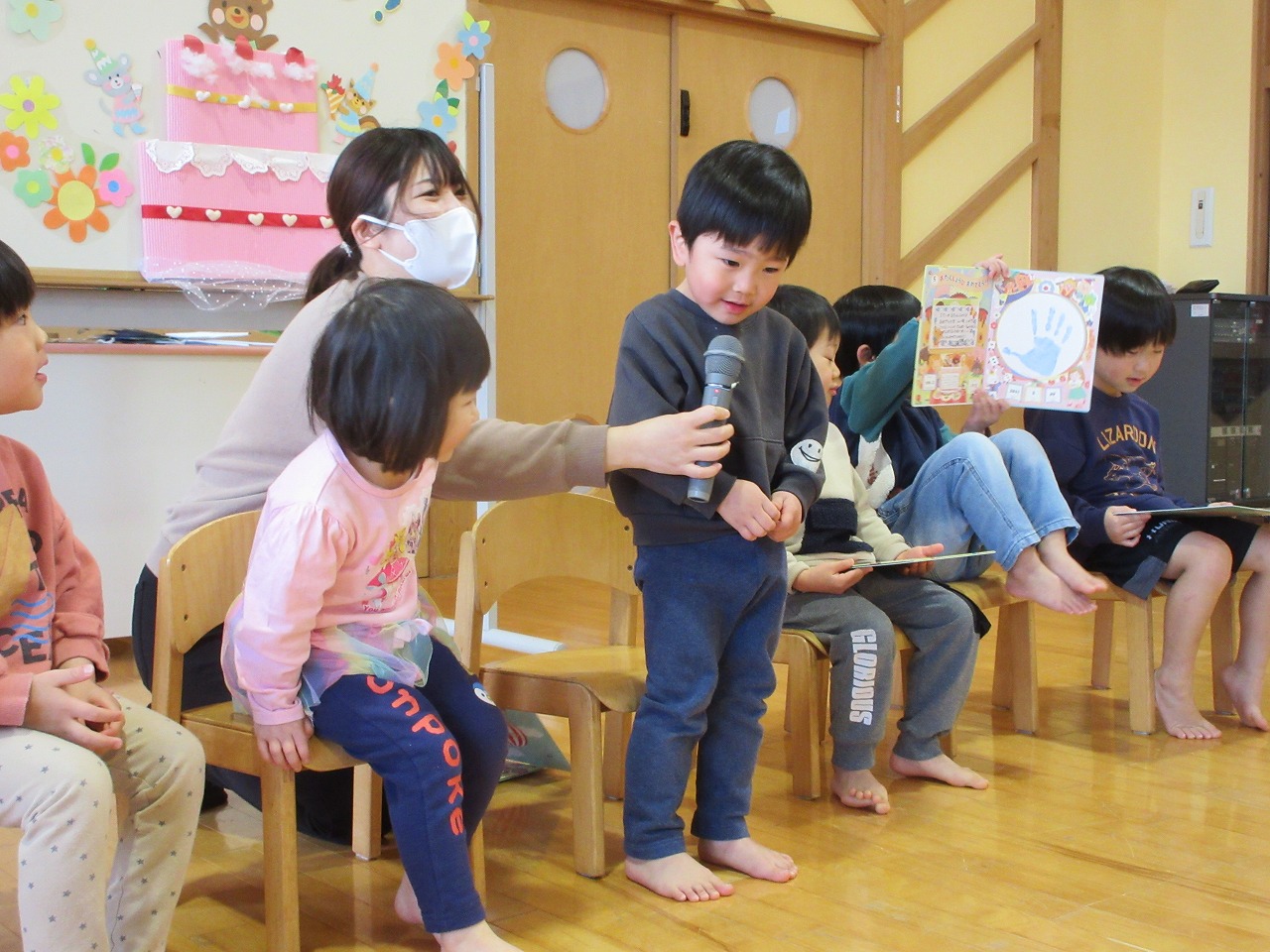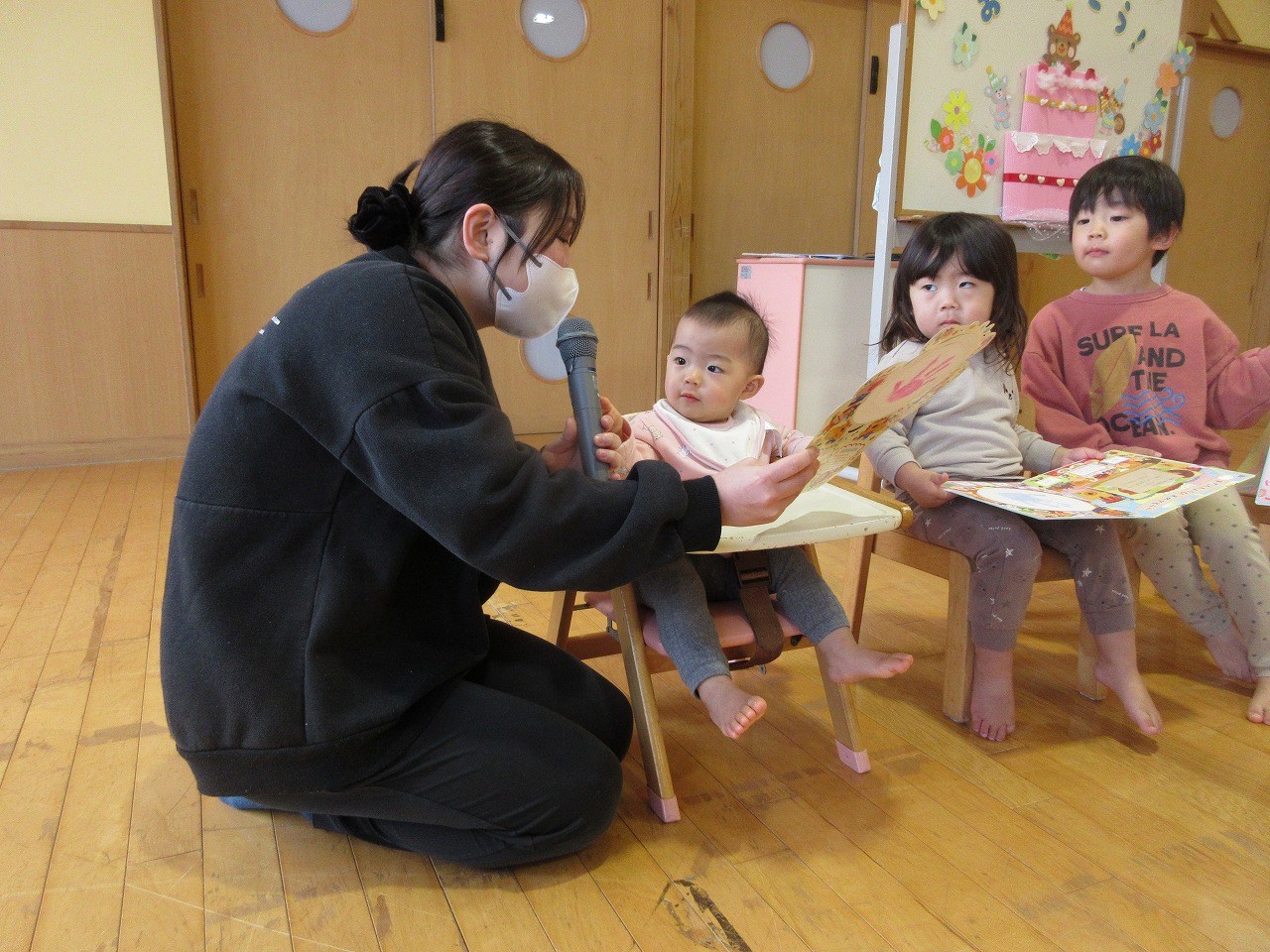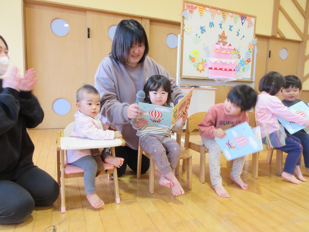 2月.3月生まれのお友達の誕生会でした。誕生日の歌や季節の歌を歌ってお祝いしました。
