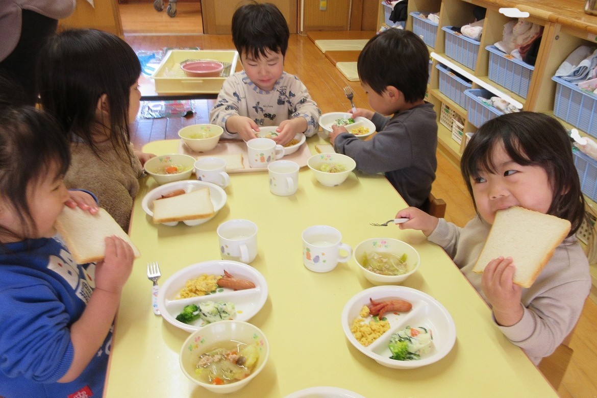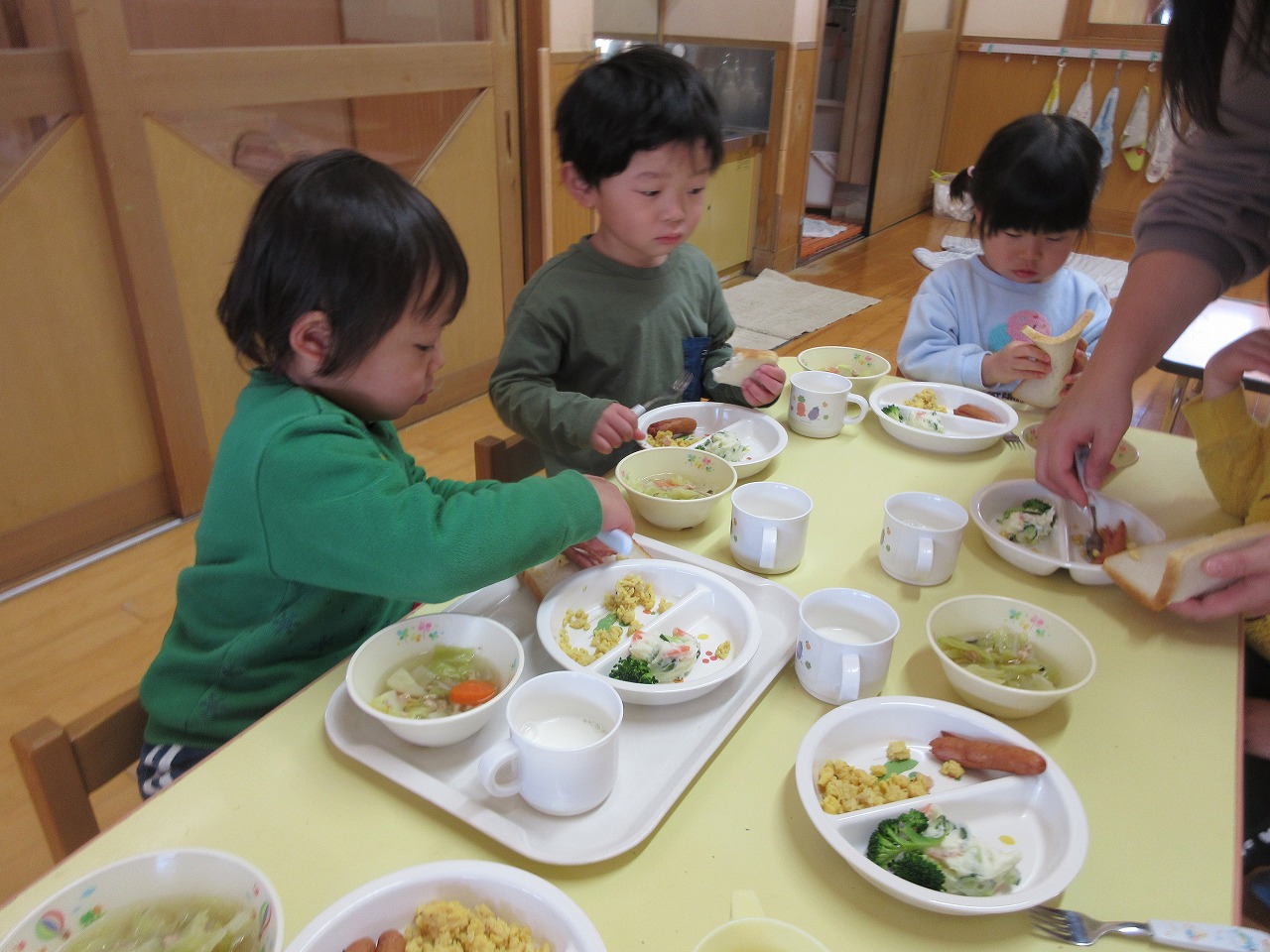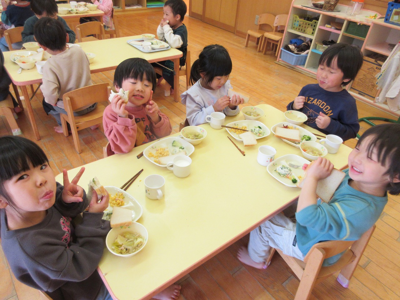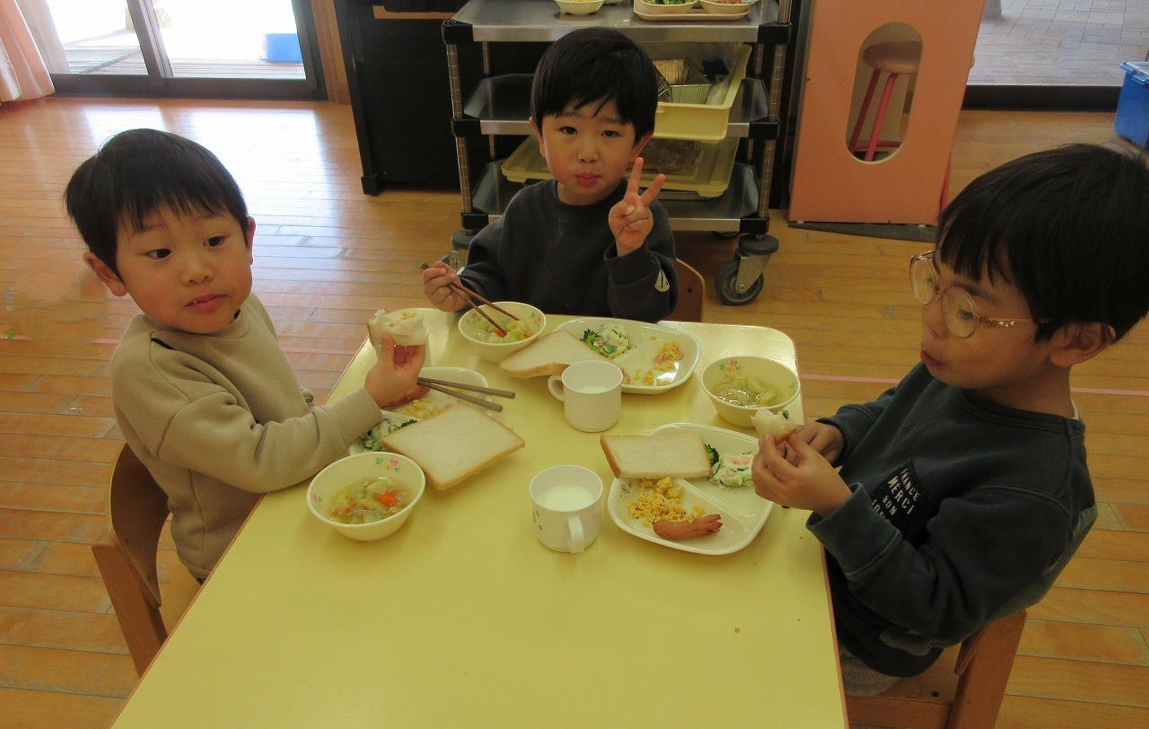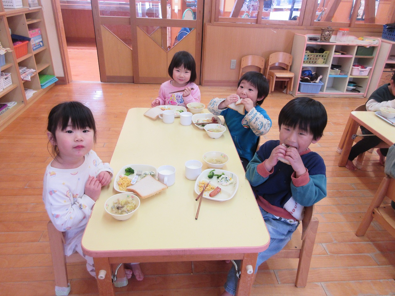 2月.3月生まれのお友達の誕生会でした。誕生日の歌や季節の歌を歌ってお祝いしました。