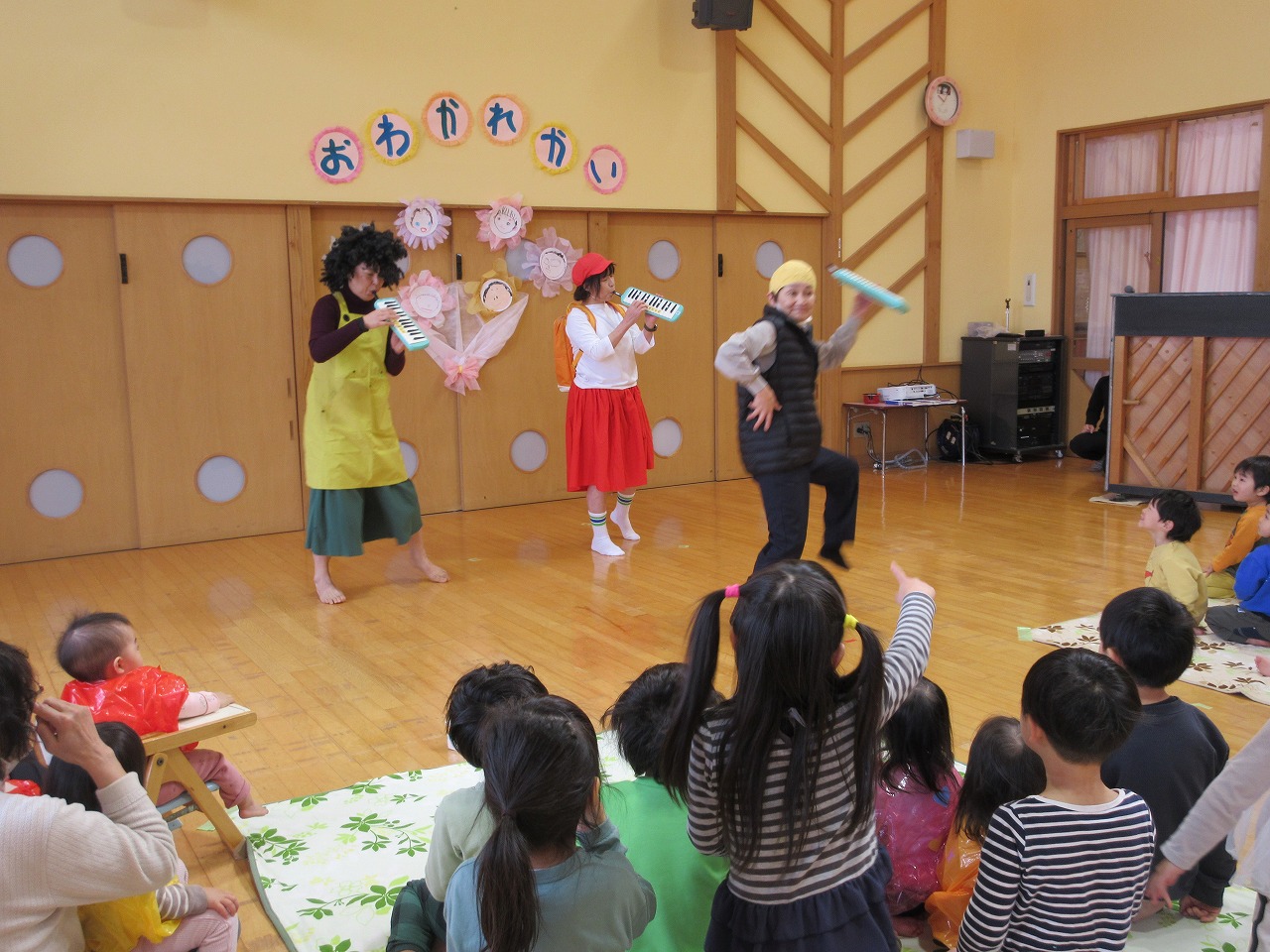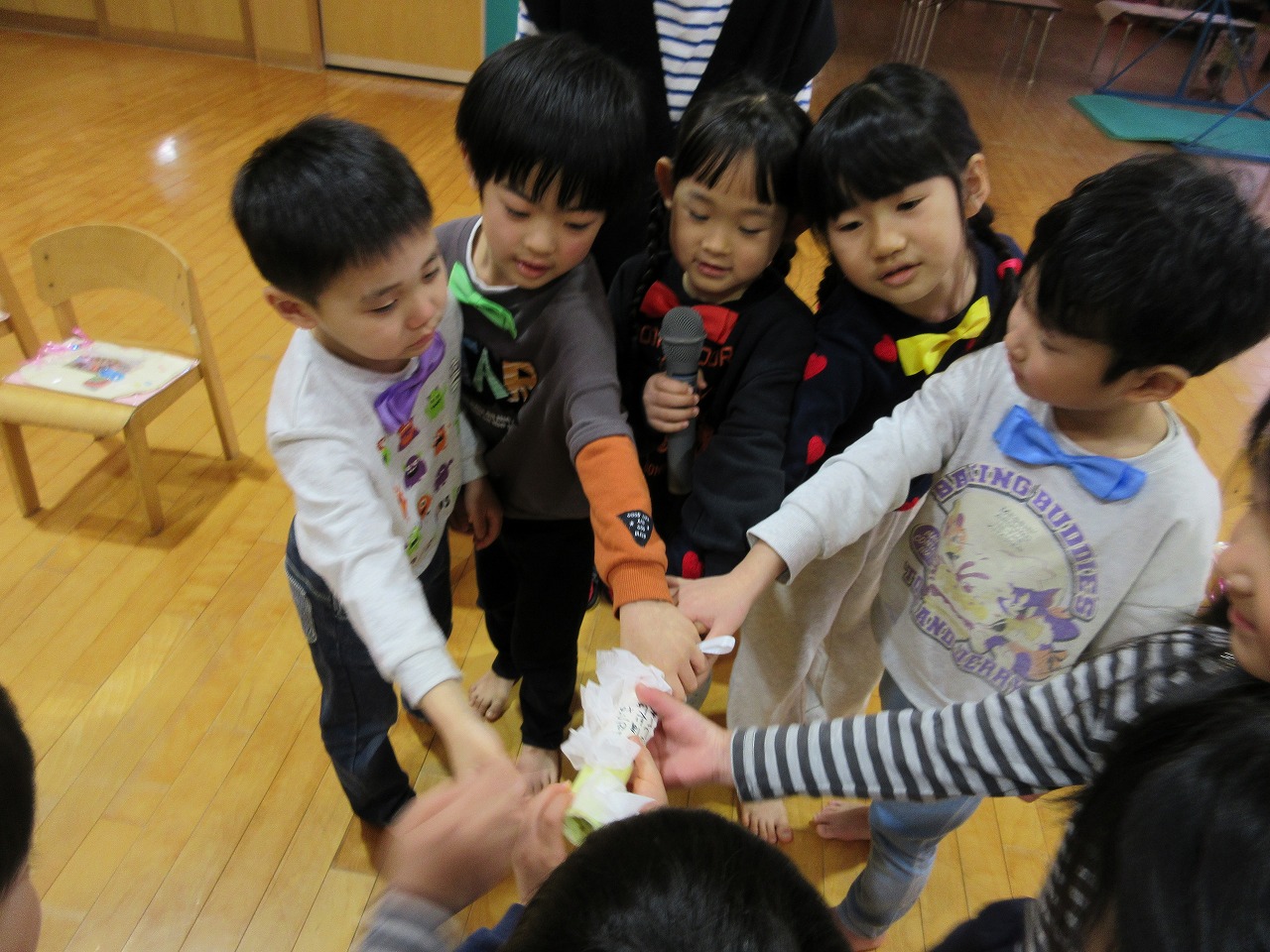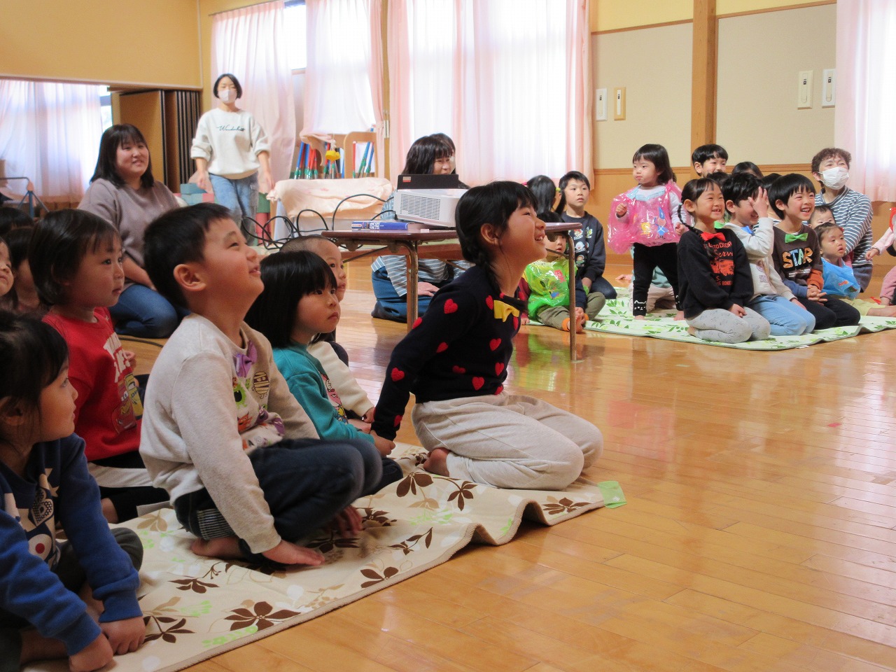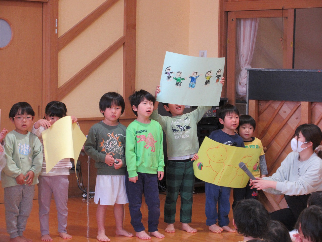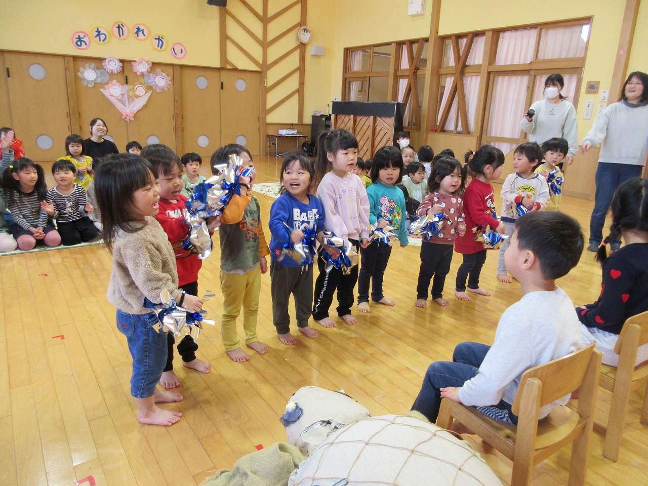 くじら組さんにありがとうの心を込めて各クラスから出し物を披露しました。みんなからの心のこもった出し物にくじら組さんも笑顔いっぱいでしたよ😊