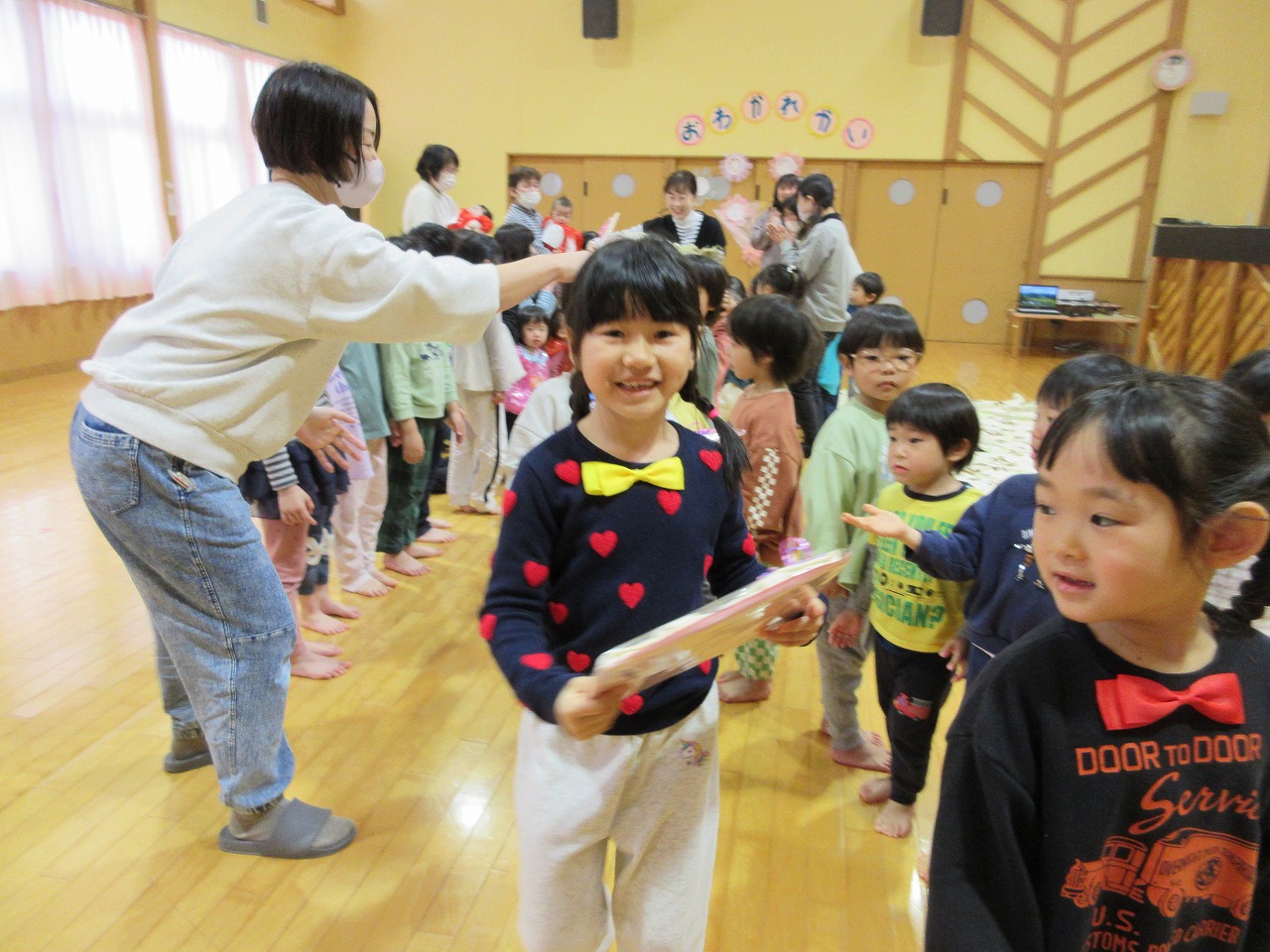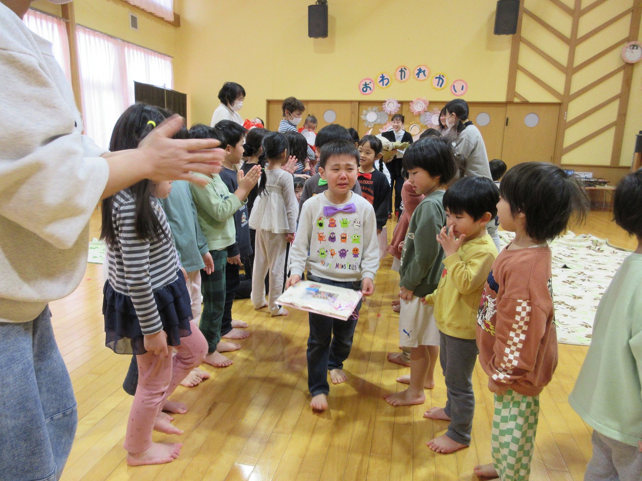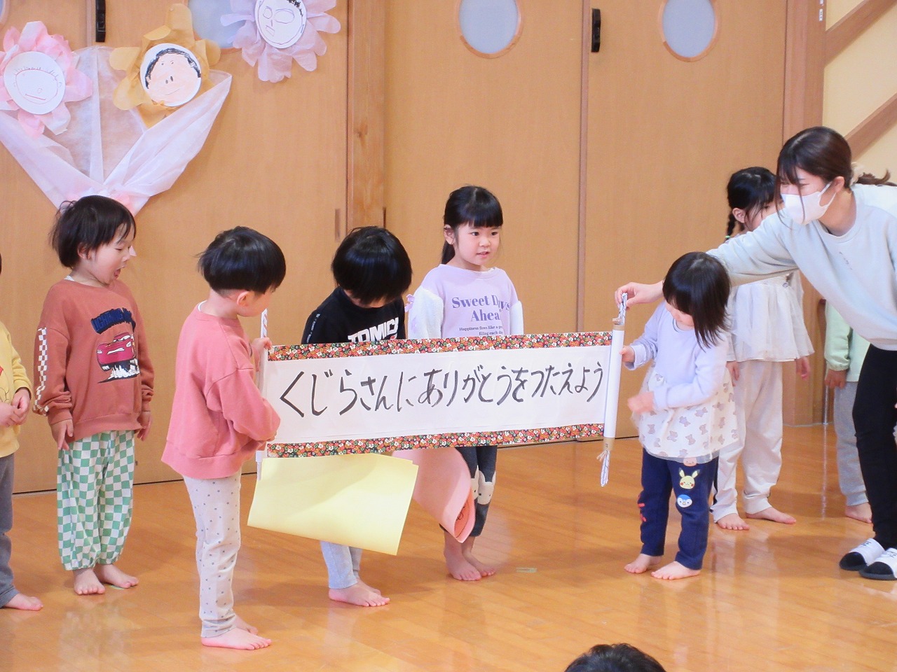 くじら組さんへのありがとうの思いでマリン保育所が温かい雰囲気で包まれました。