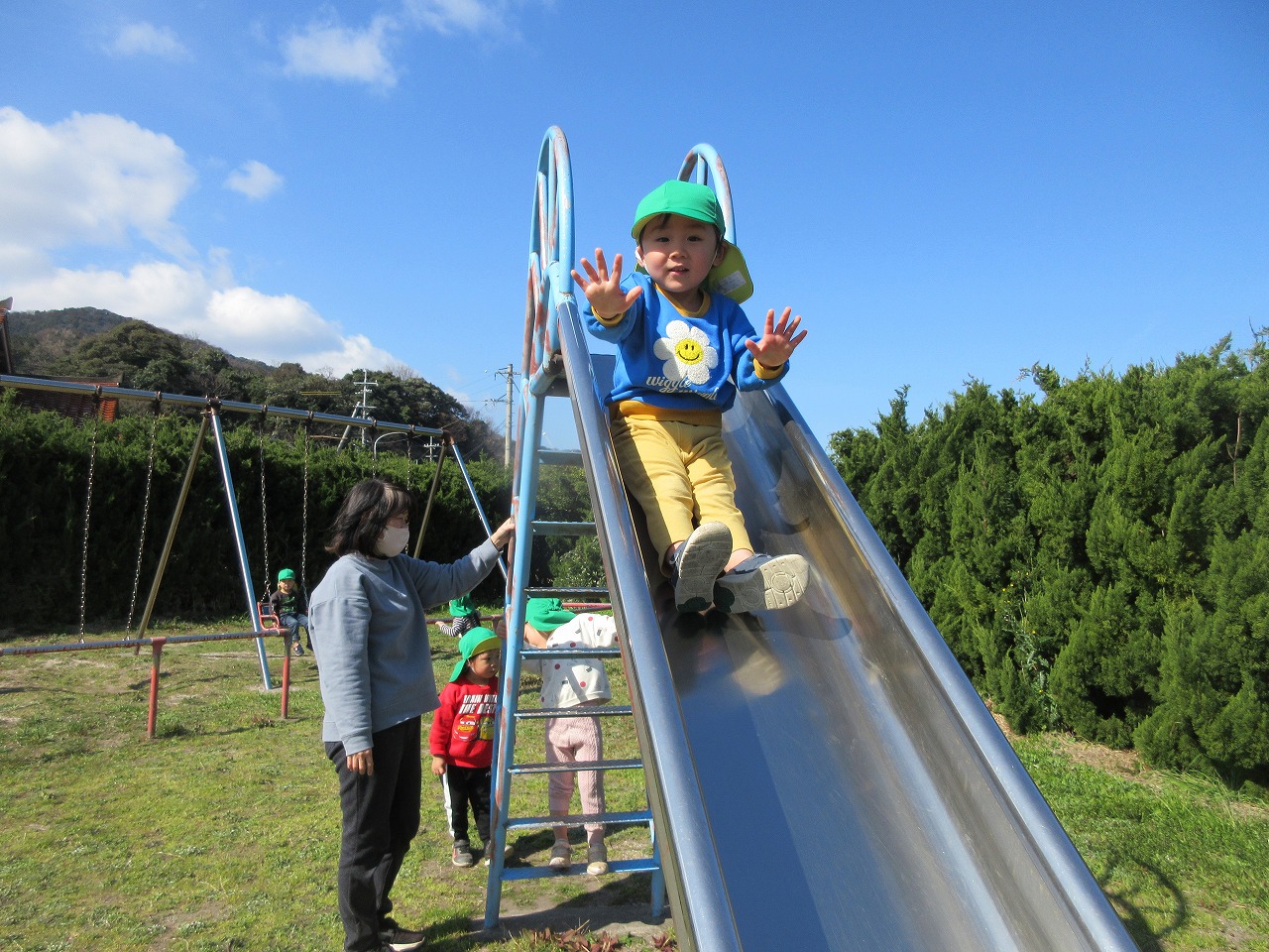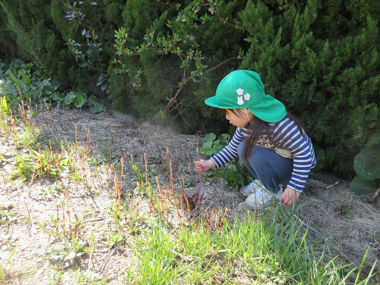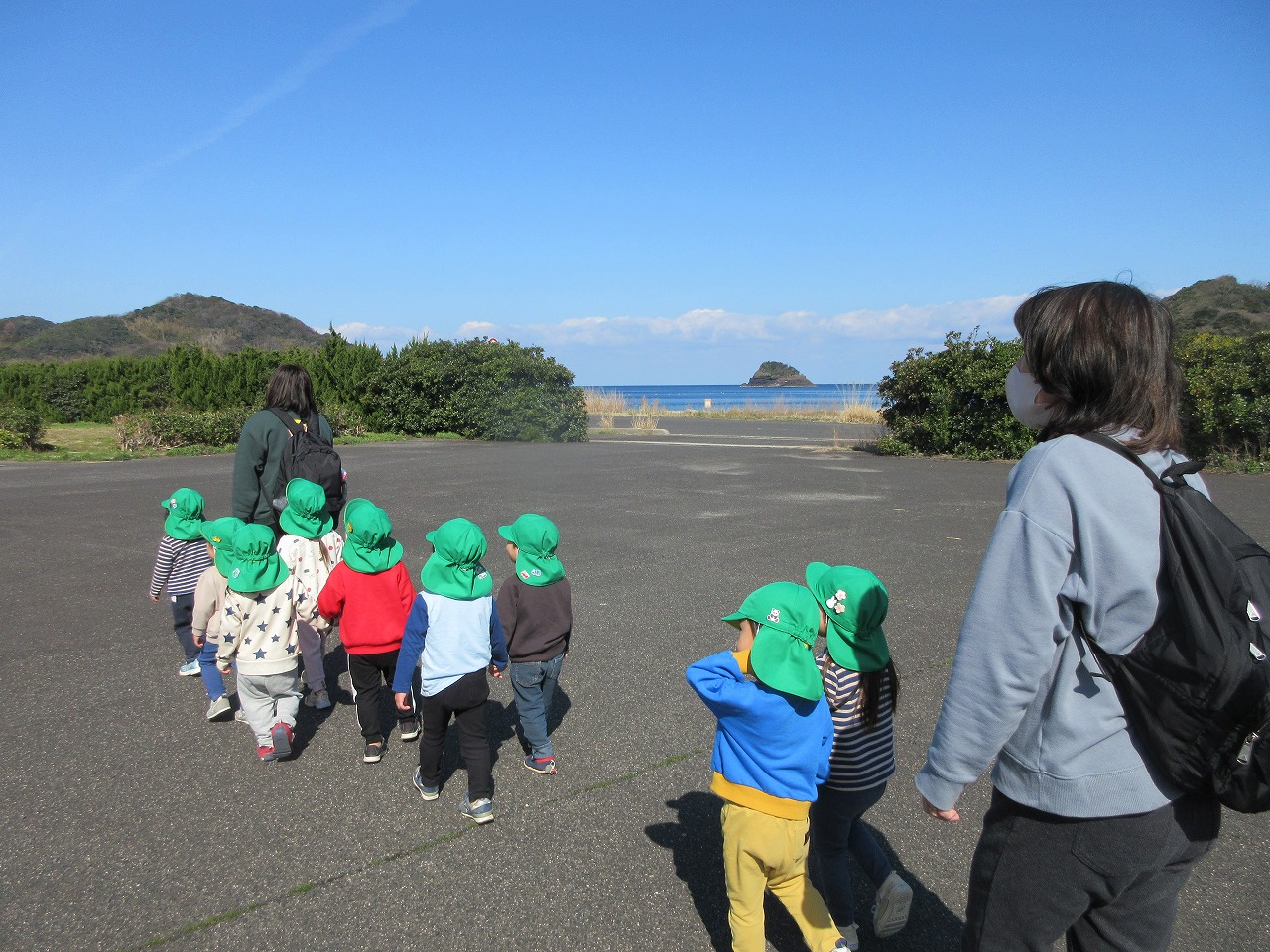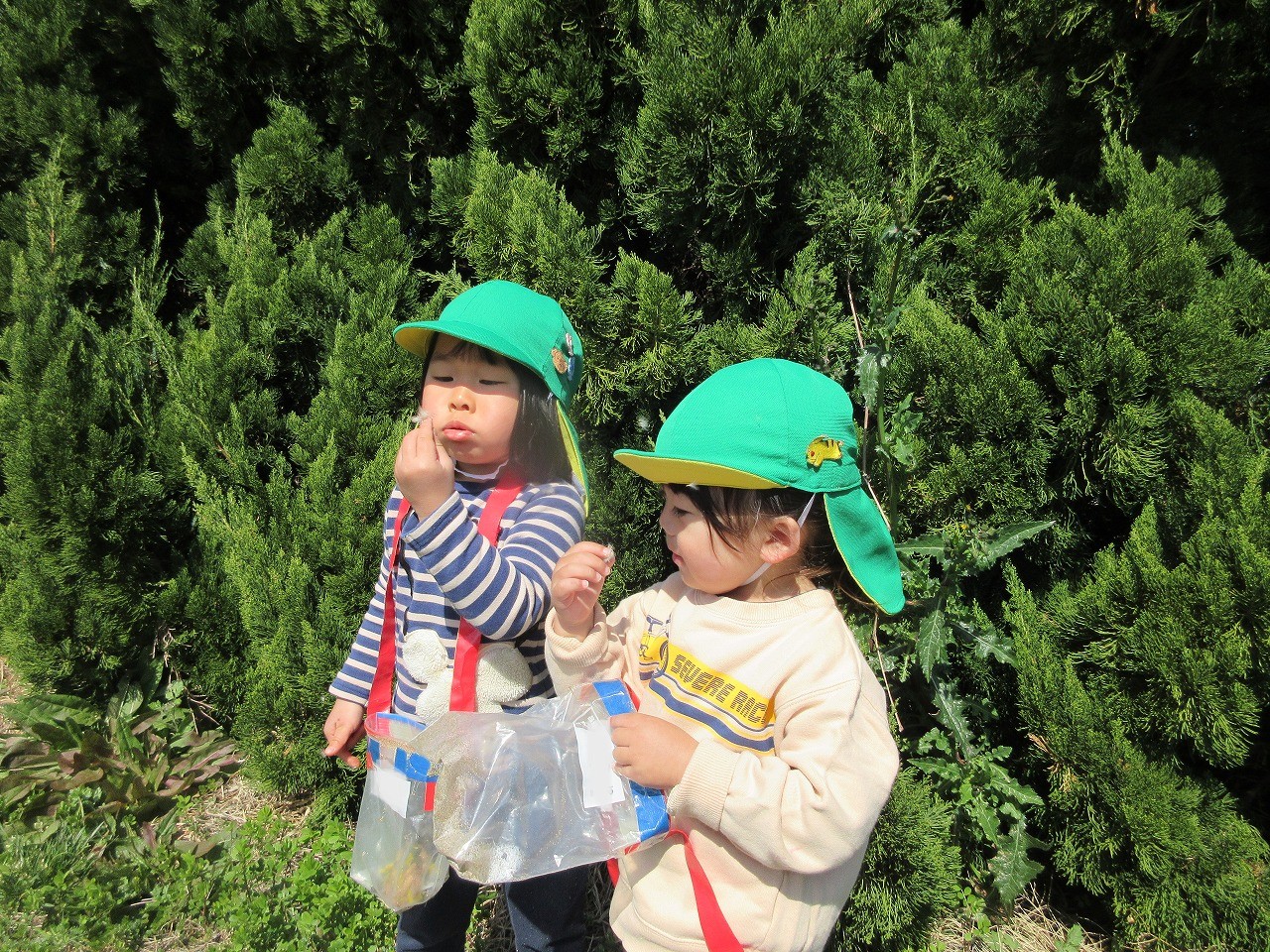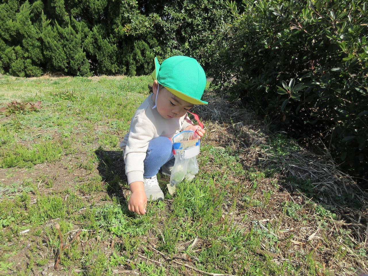 先週までの寒さが和らぎ、ぐっと春らしくなってきました。子ども達は朝登所するなり「今日散歩だが~」「晴れとるけんいけるね」と楽しみな様子で、元気いっぱい出発しました。道中にもマリンゲートの公園にもツクシ・タンポポ・ナズナ・オオイヌノフグリなど春の草花が沢山咲いていて見つけては嬉しそうに「みつけた!」と呟く子ども達でした。たくさん体を動かして遊んで帰ると「あーたのしかった」「お腹すいた~」「またいこうね」ととっても満足そうな様子でした。