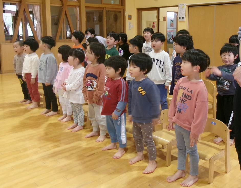 昨日は野波保育所から7名のお友達をお迎えし『はじまりの会・おむかえの会』を行いました。一人一人が堂々と自己紹介する姿に、拍手が沸き上がりましたよ。