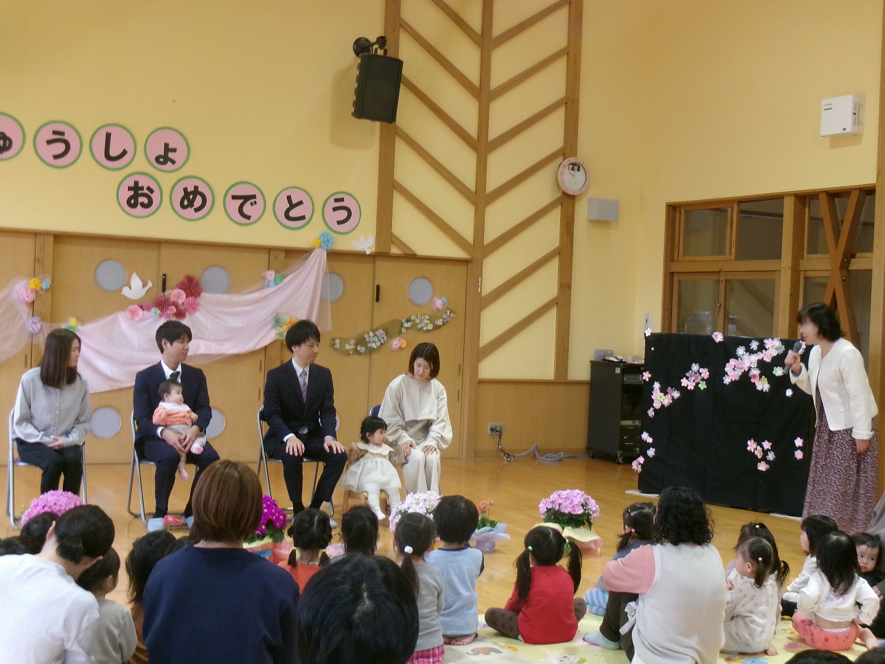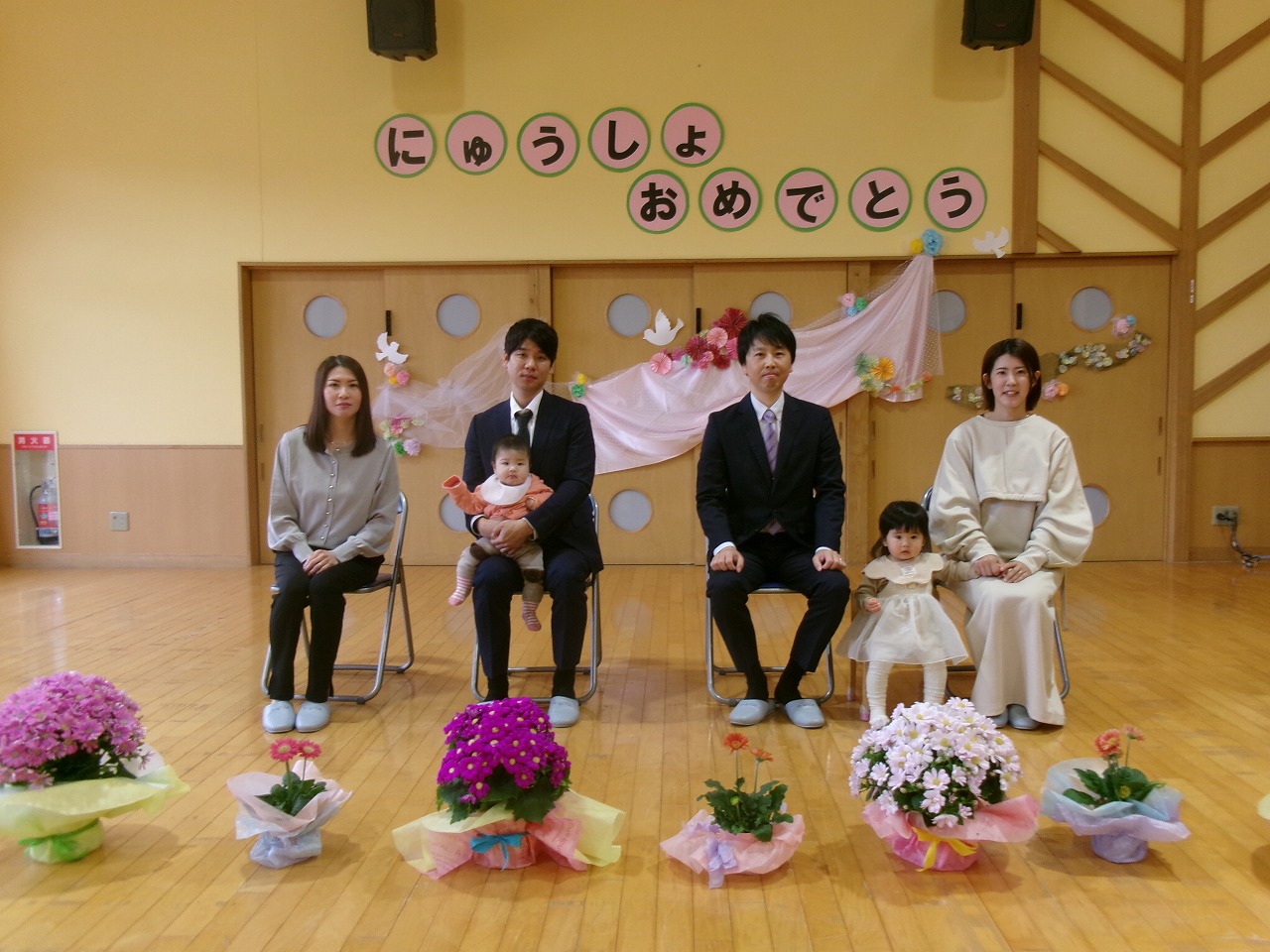 お家の方と一緒に入場し、時折笑顔も見せながら参加されとても温かい式になりました。