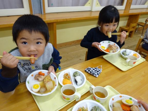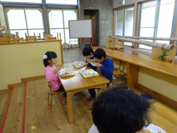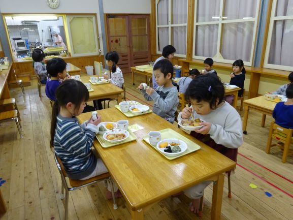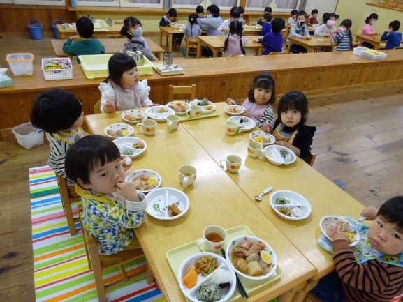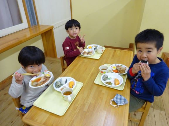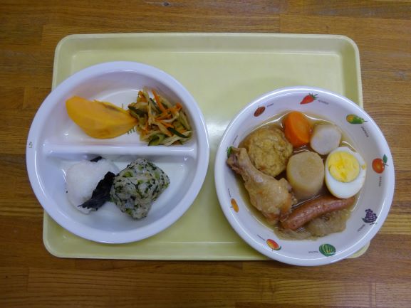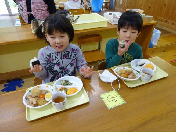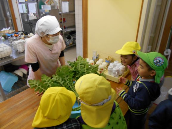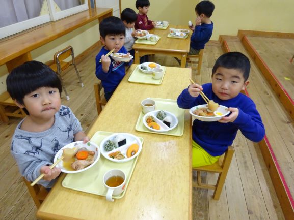 早速、今日の給食のおでんの中に大根を入れてもらいました。とても美味しい大根に、子ども達は「おいしいね」と喜んで食べていました。ほしゆめ組やにじ組のお友だちも喜んで食べてくれて、嬉しそうなそら組さんでした。