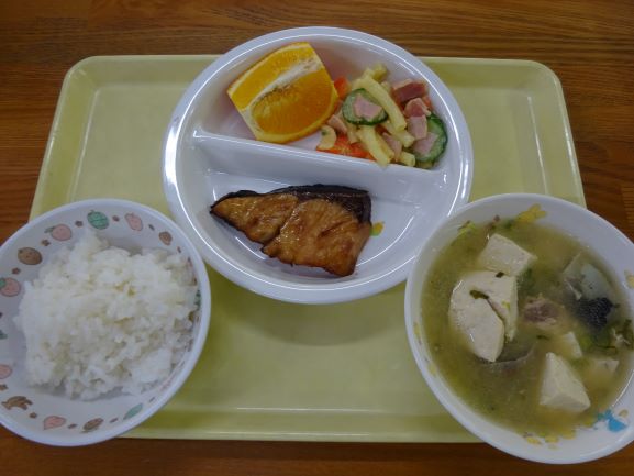解体して頂いたブリは、給食で照り焼きとあら汁にして食べました。「おいしい」「もっと食べたい」とおかわりをしてお腹いっぱい食べました。満足そうな子どもたちの表情を見て、ブリを寄贈して頂いたJF島根さん、解体をして下さった福島さん親子に心から感謝しました。