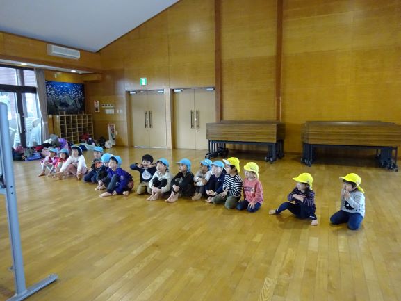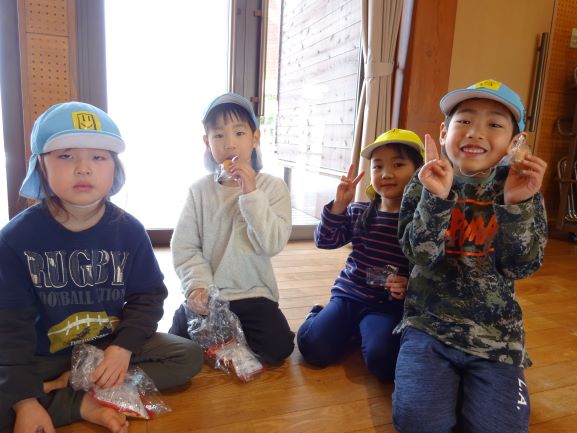 にじ組とそら組のきいろチームで、マリンパーク多古鼻へお別れ遠足に出かけました。久しぶりのバスでのお出かけに喜んだ子どもたちは、「何をするのかな?」「楽しみだね」と話に花が咲いていました。