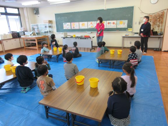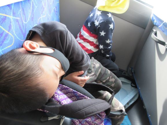 たくさん遊んだ帰りのバスでは、楽しかった話で盛り上がっている子がいる一方で、スヤスヤと寝ている子もいました。マリン保育所の友達と名残惜しそうに別れましたが、一緒に小学校に行けることが更に楽しみになったことと思います。楽しい思い出ができた1日になりました。