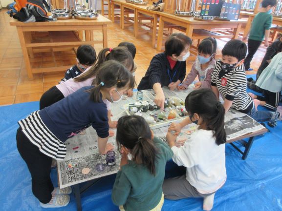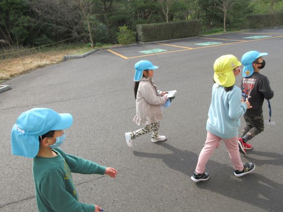 午後からは、クレヨン探検という、ウォークラリーを楽しみました。グループの友達と協力して、クレヨンくん達を探しました。いい天気で、外で楽しむことができ、よかったです。