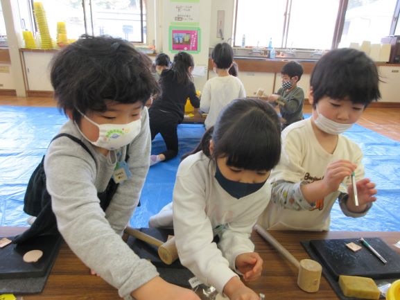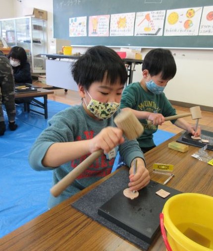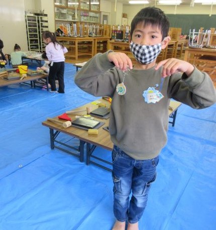 午前中はレザークラフトでキーホルダー作りをしました。思い思いに模様をつけたり色を塗ったりし、世界に1つだけの自分のキーホルダーができました。嬉しそうに友達と見せ合っていました。