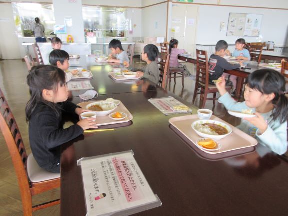 そして、お昼ご飯にはカレーセットを食べました。「おいしー!」と、みんな大喜びでした。