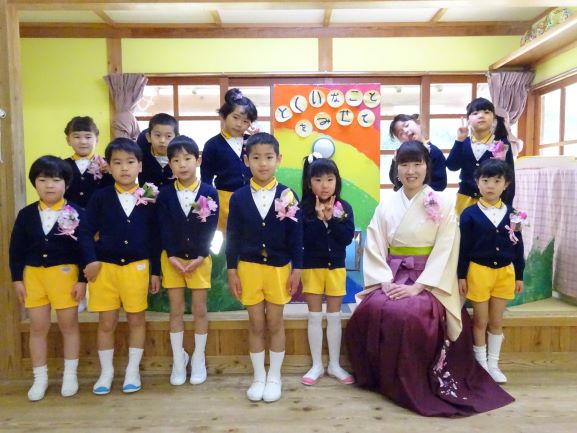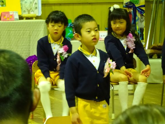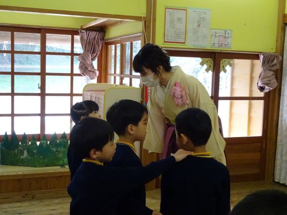 にじ組に入ると担任の晴れやかな姿に大興奮。