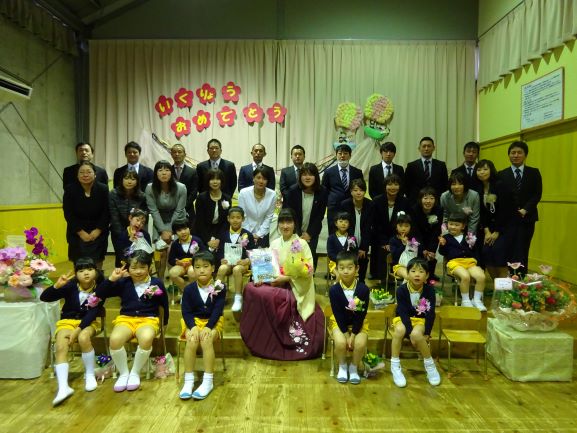 晴れやかな衣装の保護者さんと一緒に、笑顔いっぱいのみんな。