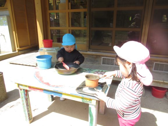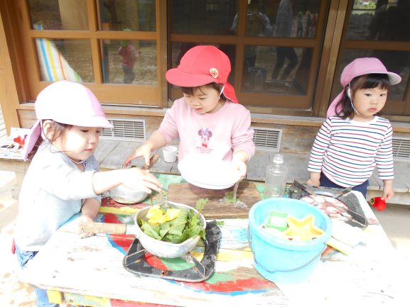 ほし・ゆめ・そら組さん、みんなでお庭へ出てみたよ。
