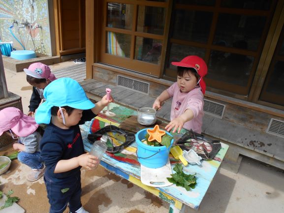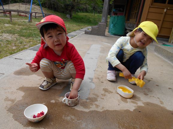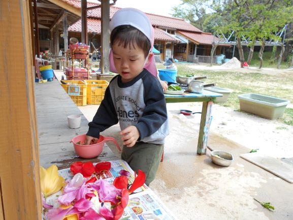 お庭の花びらを集めて ジュースができるよ