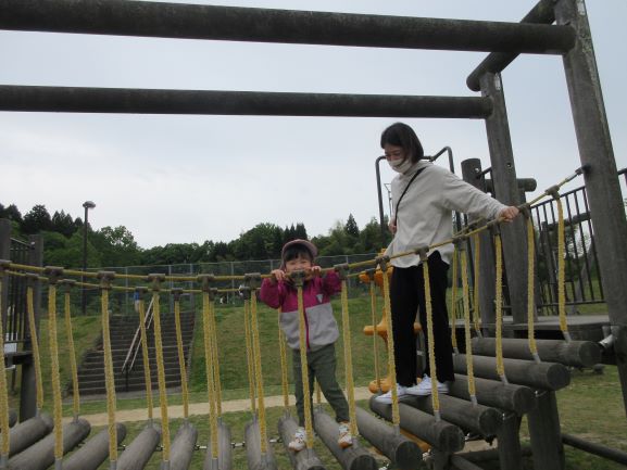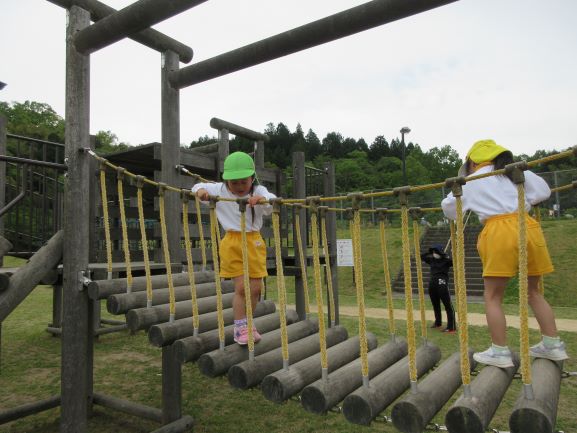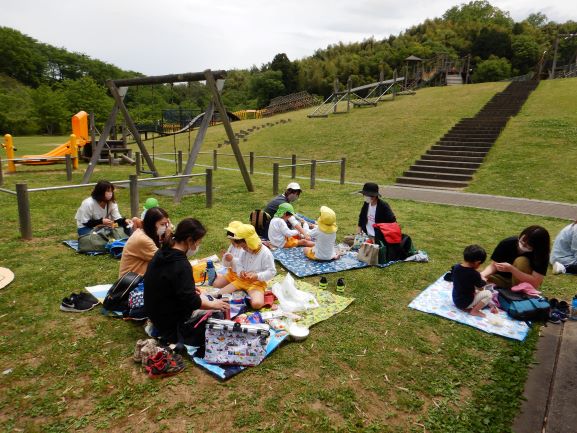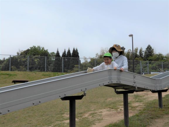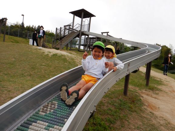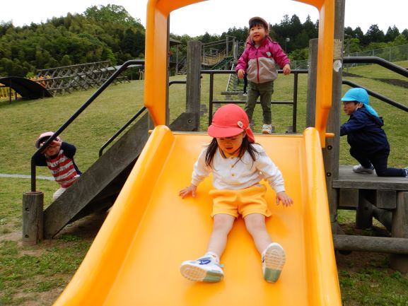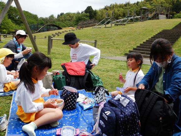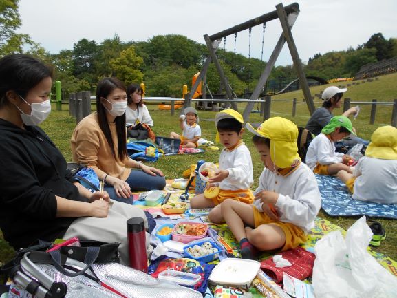 丸子山公園に親子遠足に行きました。保育所はもちろんですが、バスも新型コロナウイルス感染症の対策が徹底してあり、安心して乗ることができました。出発すると、嬉しそうな笑顔で、わくわくしている子ども達でした。公園に着くとたくさんの遊具がありました。今日は、野波保育所が貸し切りということで、広い公園の中をのびのびと大喜びで遊ぶことができました。親子で遊ぶ姿も、とても微笑ましかったです。そして、あっという間に時間が過ぎ、お弁当の時間になりました。楽しみにしていたお弁当を、お母さんと一緒に嬉しそうに食べていました。お腹も心も満たされて、帰りのバスの中ではぐっすり眠る子ども達でした。嬉しい楽しい思い出になりました。