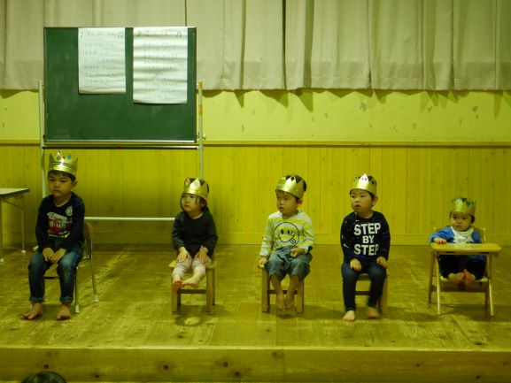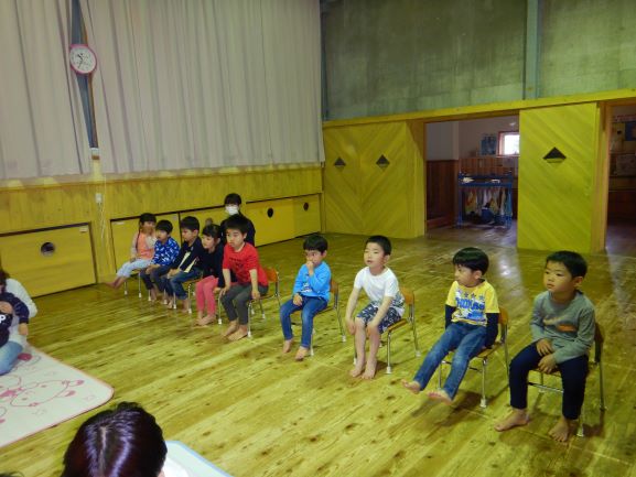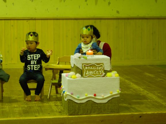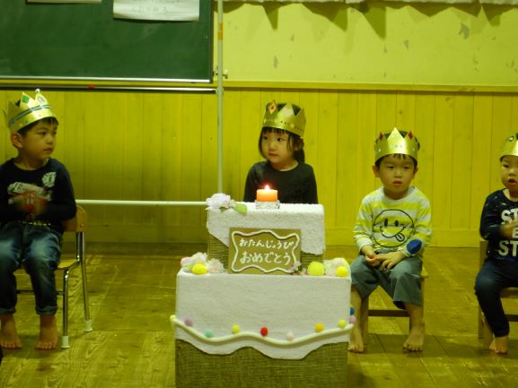 4・5月生まれの誕生会をしました。誕生児はみんなで5人。一人一人、自己紹介をしたり、おうちの人からのメッセージを読んでもらったりしました。みんなにお祝いしてもらい、嬉しそうな表情を見せてくれた子ども達です。