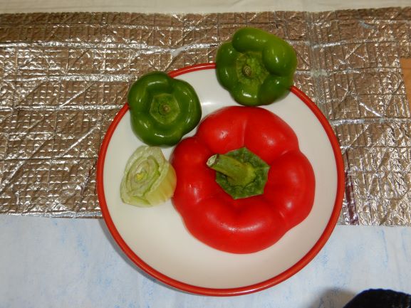 鮮やかなパプリカとピーマン、小松菜を使いました