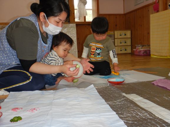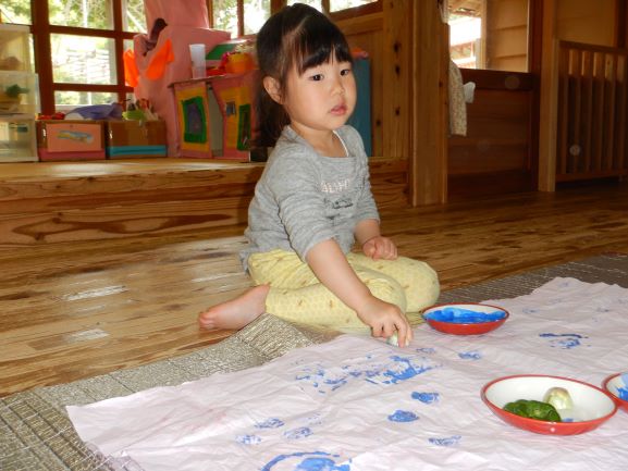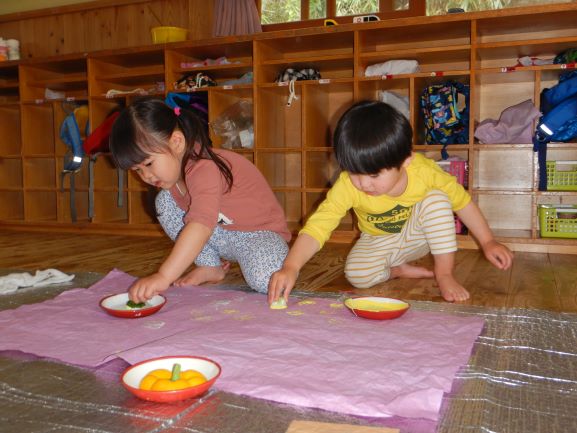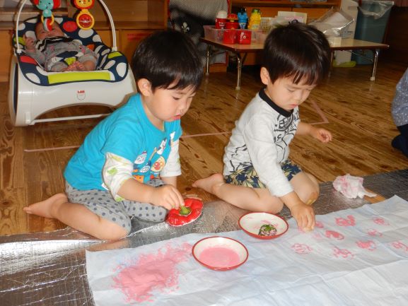 ほし組とゆめ・そら組で野菜スタンプ遊びをしたよ!
