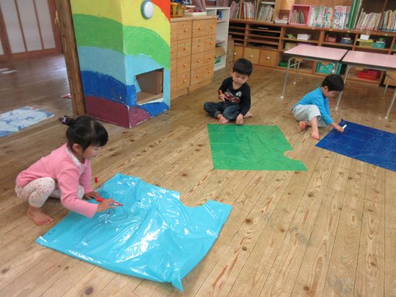 合羽を作って遊んだよ