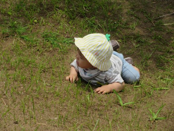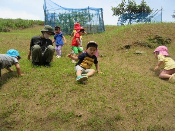 這いつくばって登ったり、斜面をお尻で滑ったり、恐る恐る立って登ってみたり…と、小さい体全身を使って遊びました。