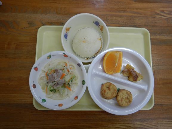 「17日の豆乳サラダうどんとジャーマンポテトがおいしかったよ♪全部お皿をピカピカにしたよ!」