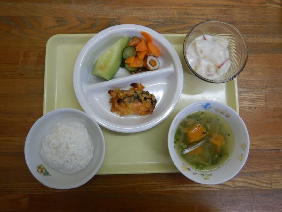 「30日の汁と、おやつのフルーツヨーグルトがおいしかったよ♪」