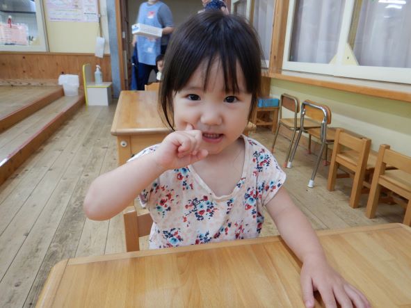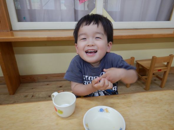 27日のコロッケを、はじめは苦手そうにしていましたが、食べてみるとおいしかったようで、ぺろりと食べていましたよ♡