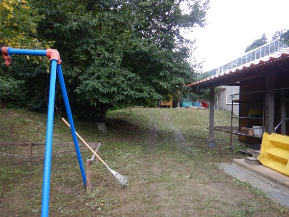 保護者の皆様、小波社協の皆様に奉仕作業をして頂きました。事前に福島達さんに解体して頂いたプールを始めに片付けてもらいました。今年の夏は、雨の日が多く、草の伸びが早かったのですが、皆さんがとても熱心に、また協力をしながら作業をして下さり、どの場所も見違えるようにきれいになりました。月曜日に登所した子ども達は、「わあ、すっごいきれいになってる」「そとでいっぱいあそべるね」と大喜びでした。早速、かけっこをしたり、ひなたっぼこをしたりして遊びました。子ども達の楽しそうな笑い声を聞き、私達もとても嬉しくなりました。保護者の皆様、小波社協の皆様、ありがとうございました。