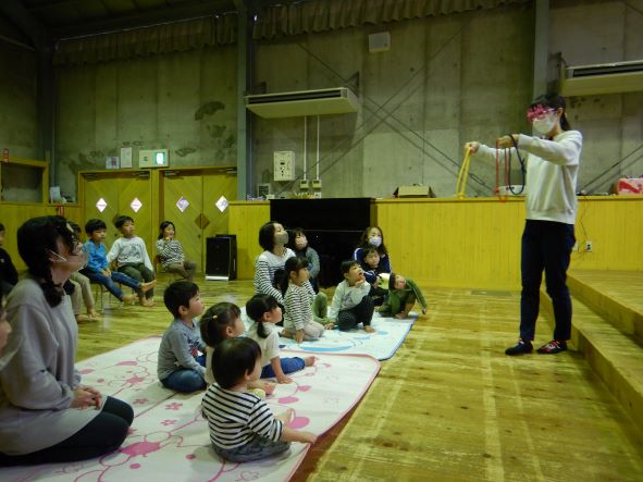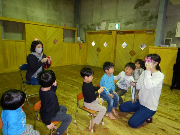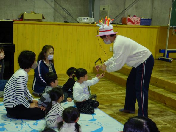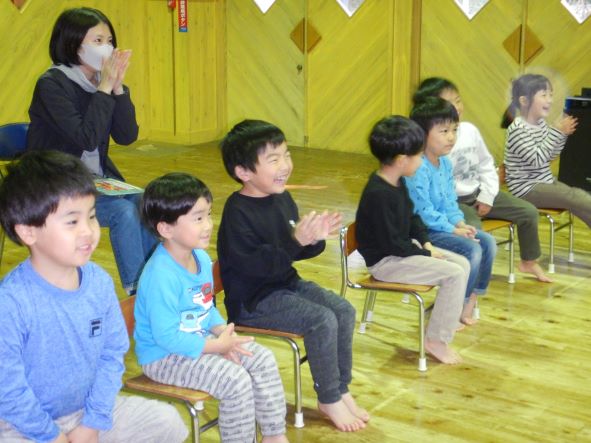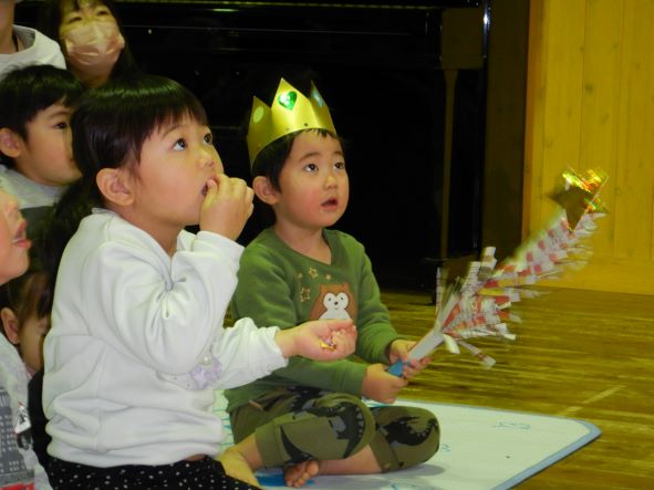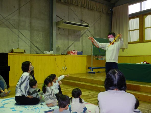 そして、今日のお楽しみ会は、マジックショーでした。笑顔で楽しんだり、不思議そうな顔をしたり、みんなで「ちちんぷいぷいの、ぷい!」と魔法をかけたりして、盛り上がりました。