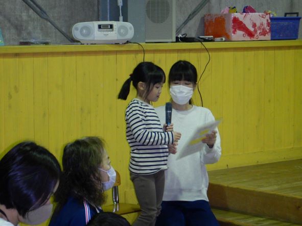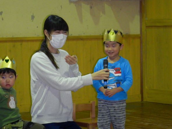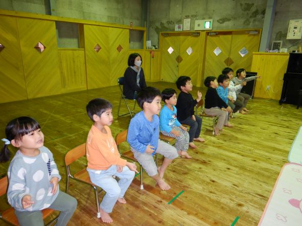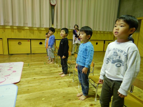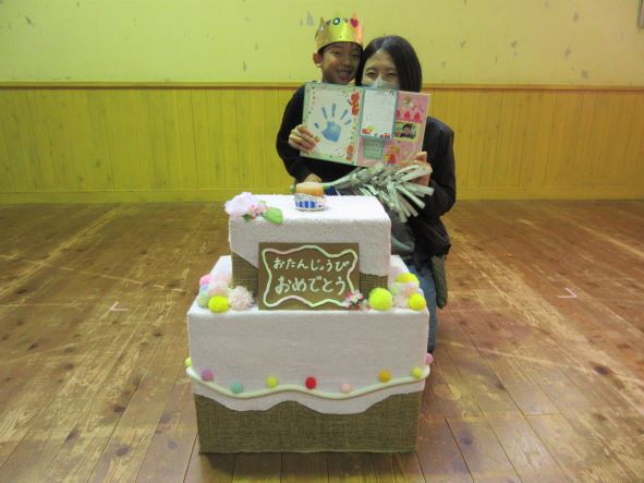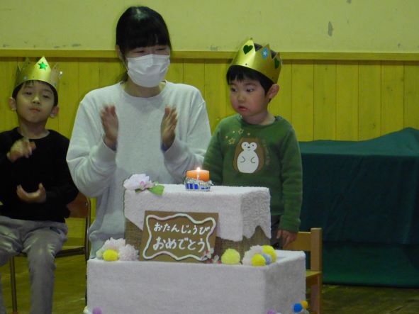 今日は10・11月生まれの誕生会で、3名のお友達をみんなでお祝いしました。誕生児の子ども達は少し恥ずかしがっていましたが、とても嬉しそうにステージに上がっていましたよ。お家の人からのメッセージやみんなからの歌のプレゼントにも喜んでいました。