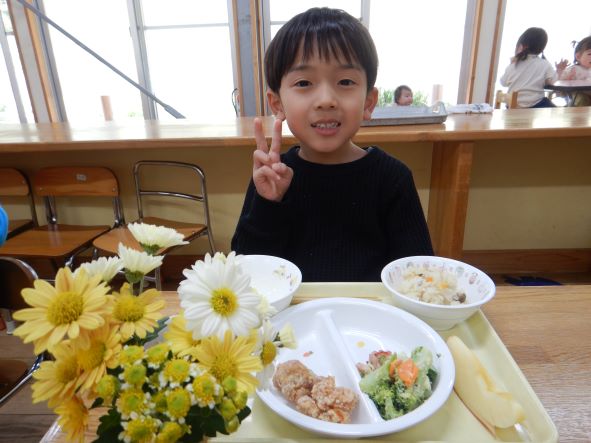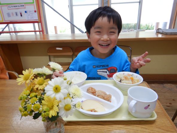 お誕生会メニューの給食おいしかったよ
