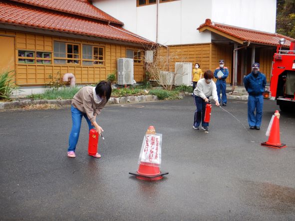 消火器の効果的な使い方を指導してもらいました