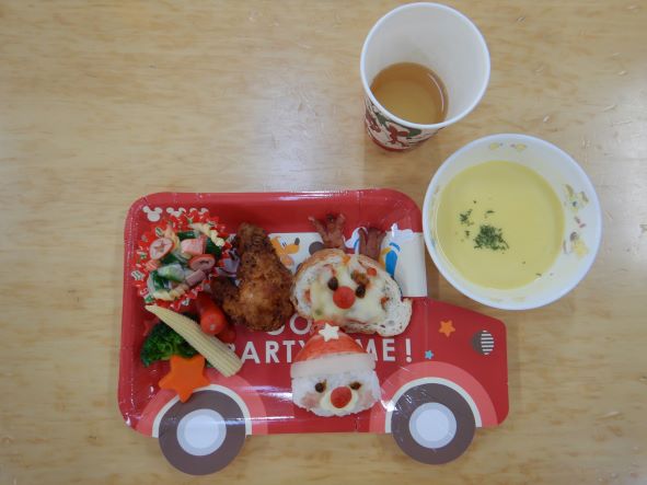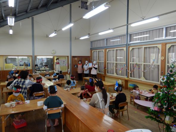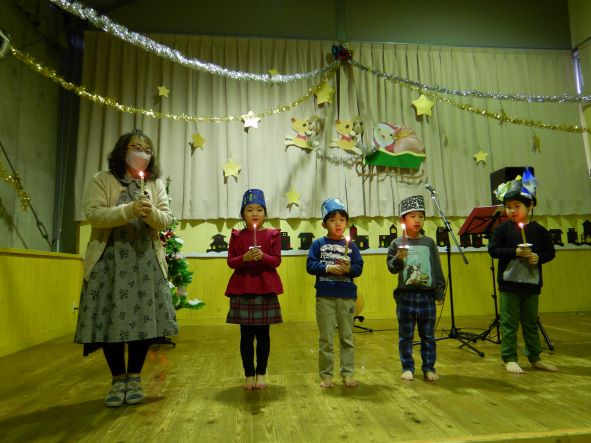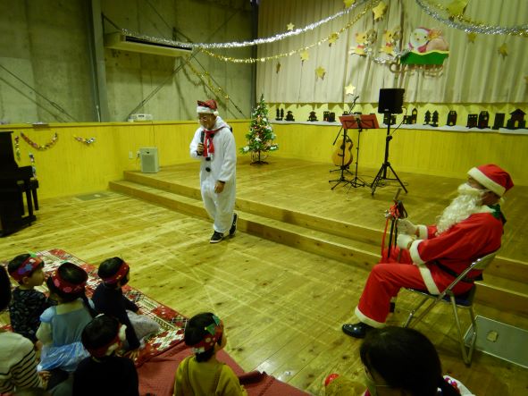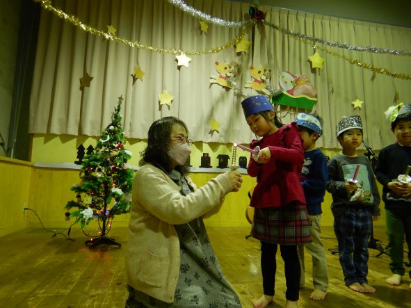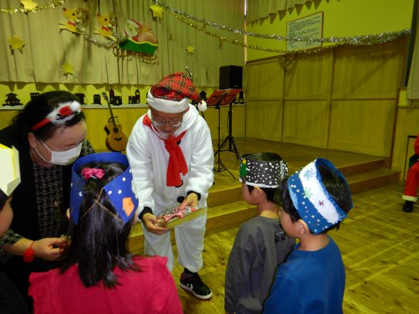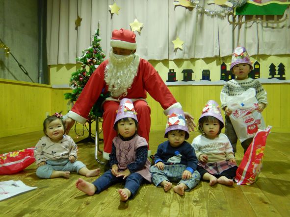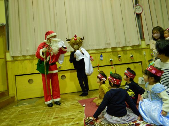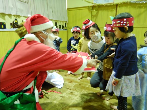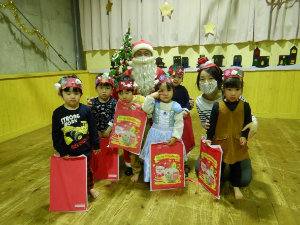子ども達はサンタクロースさんが持って来てくださった、白い大きな袋にわくわく!