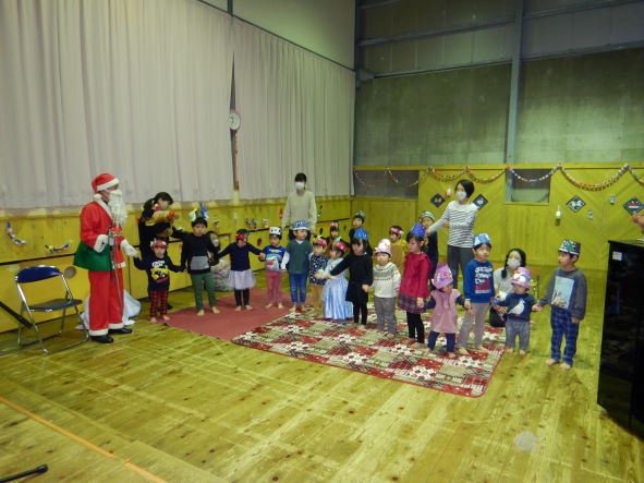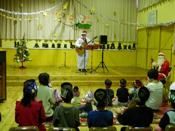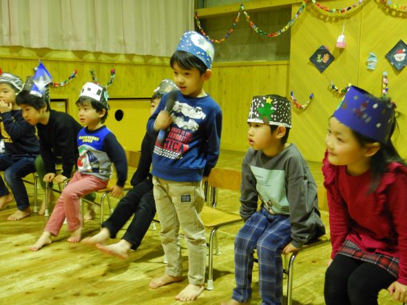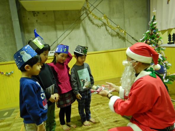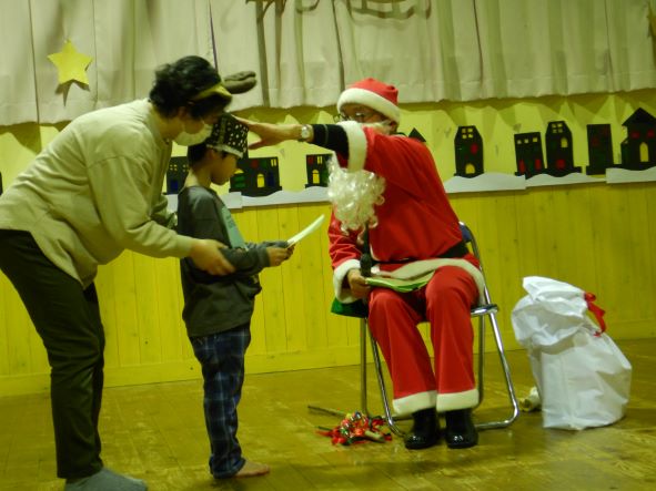 サンタクロースには質問をしたり、頑張ることを披露したりしました。