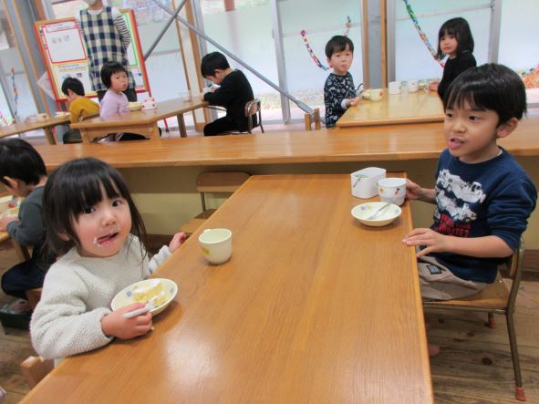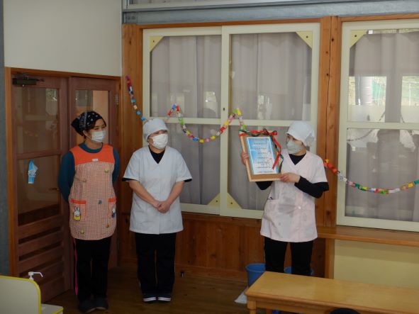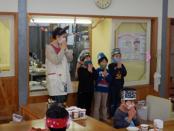 「給食の先生、作ってくれて、ありがとう」「いただきます」