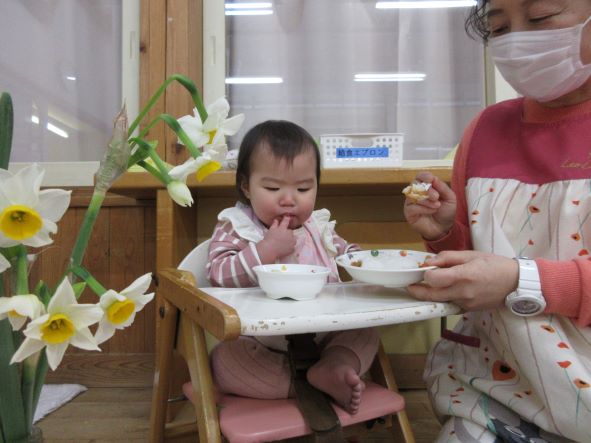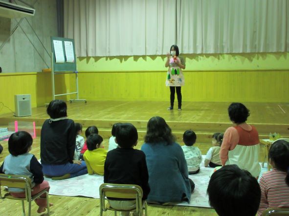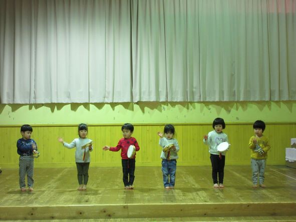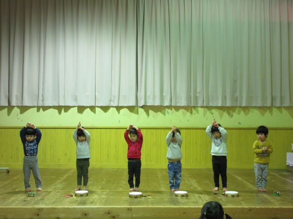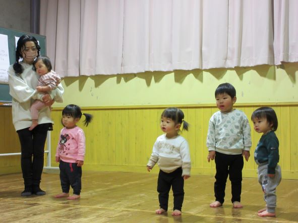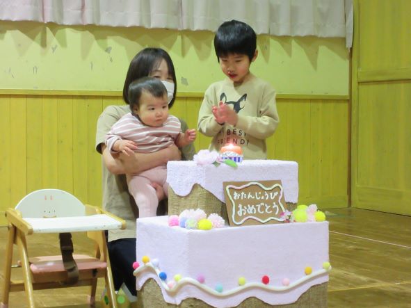 今月の誕生児は、1歳の誕生日を迎えるお友達1名でした。野波保育所の末っ子をみんなでお祝いしてあげようと、各クラス踊りや合奏を練習して、プレゼントしました。野波保育所らしいアットホームで、心のこもったお祝いで誕生会が盛り上がりました。