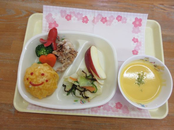 きいろチームさんのリクエストメニューの、オムライス・唐揚げ・南瓜スープが入った、お楽しみメニューでした。
