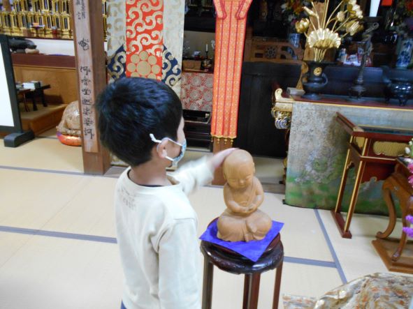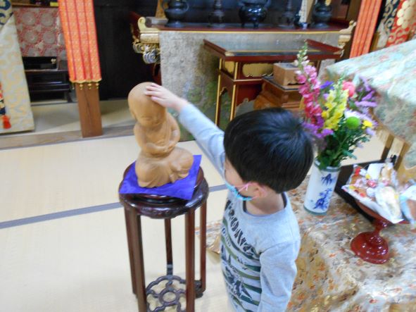 5月9日に見徳寺で行われた花まつりに参加しました。曇り空を見上げ「あめがふらないといいなぁ・・・」とつぶやく子どもたちでしたが、お大師さん以来の見徳寺への散歩を楽しみにしていました。