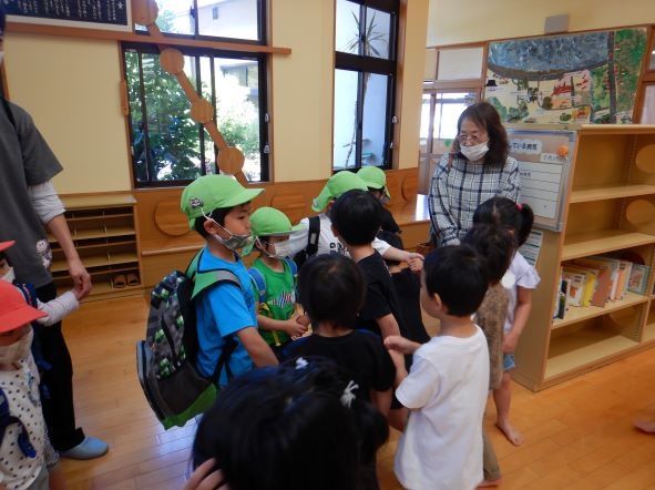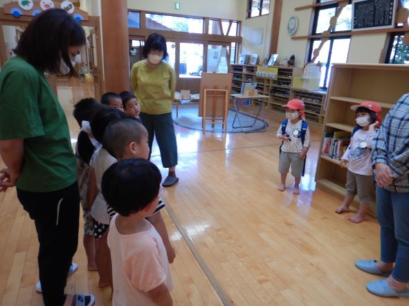 「きょうはやおきしたよ!」「あーどきどきする」「なにするのかなぁ」と同級生の子との交流を楽しみにする気持ちの中に、少し緊張している子どもたちの姿も見られました。