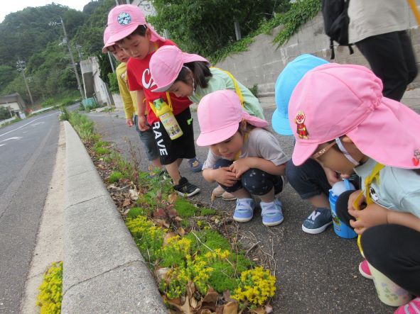道端に小さなお花が咲いているのをみつけたね