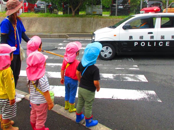 道路を横断したら、大好きなパトカーに出会えたよ