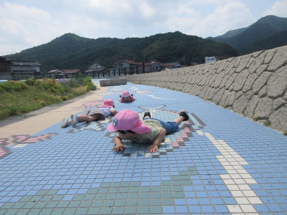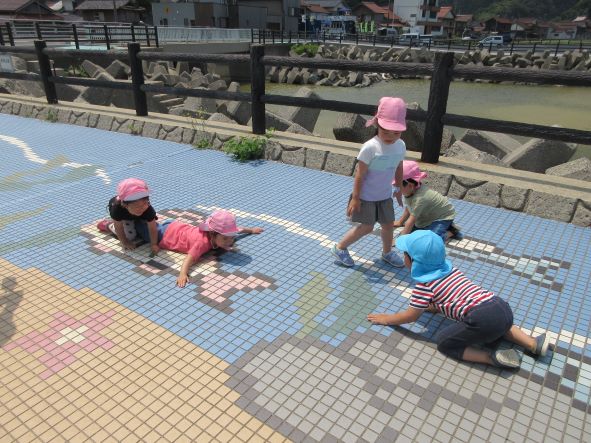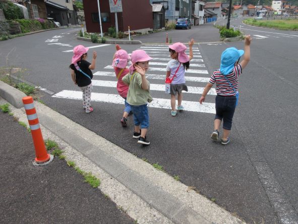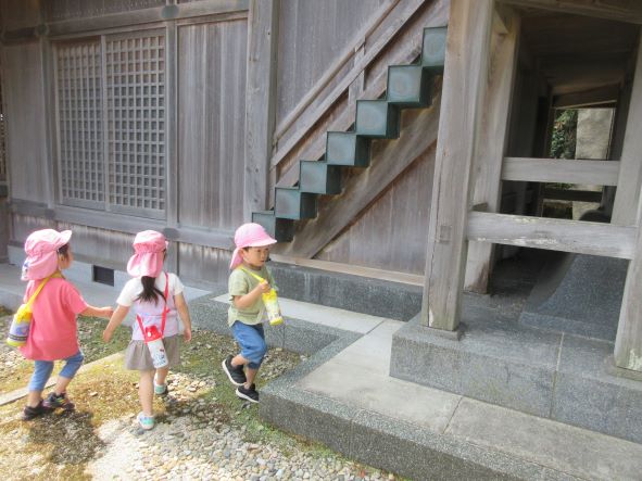 初めての長い道のりでしたが、しっかりとした足取りで歩き、帰りも「よーいドン」と走る元気いっぱいの子ども達でした。