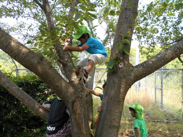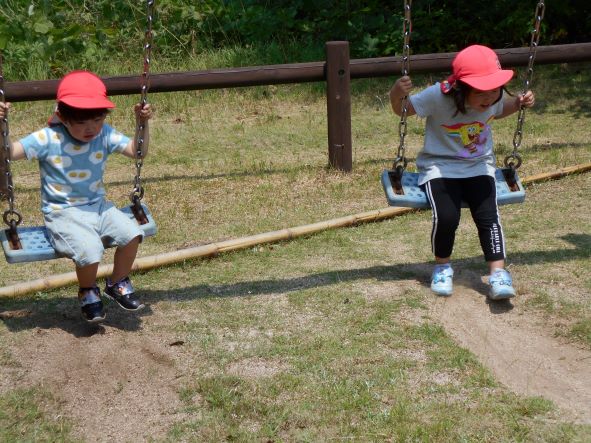 公園ではかけっこや木登り、揺れる遊具などをして遊びました。階段を上がった先には運動場とバスケットゴールもあったので、「つぎはボールもっていこう」「バスケやってみたい!」と言い、また次回来るのを楽しみにする子どもたちでした。