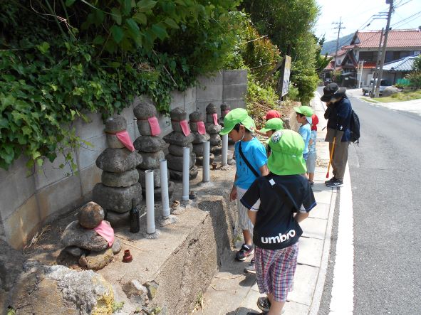 道中のお地蔵さん。 「ぶじにかえれますように」